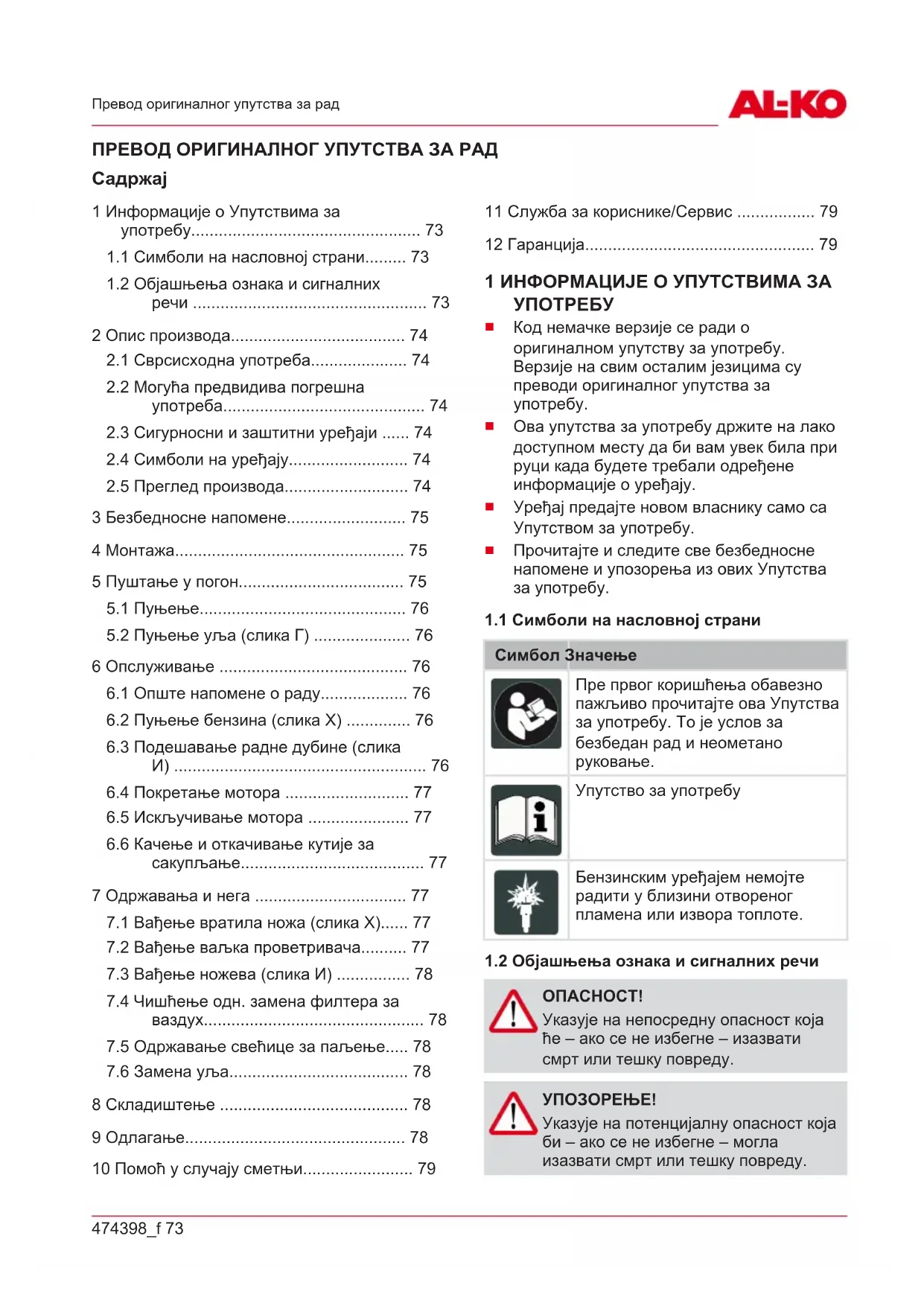 Превод оригиналног упутства за рад