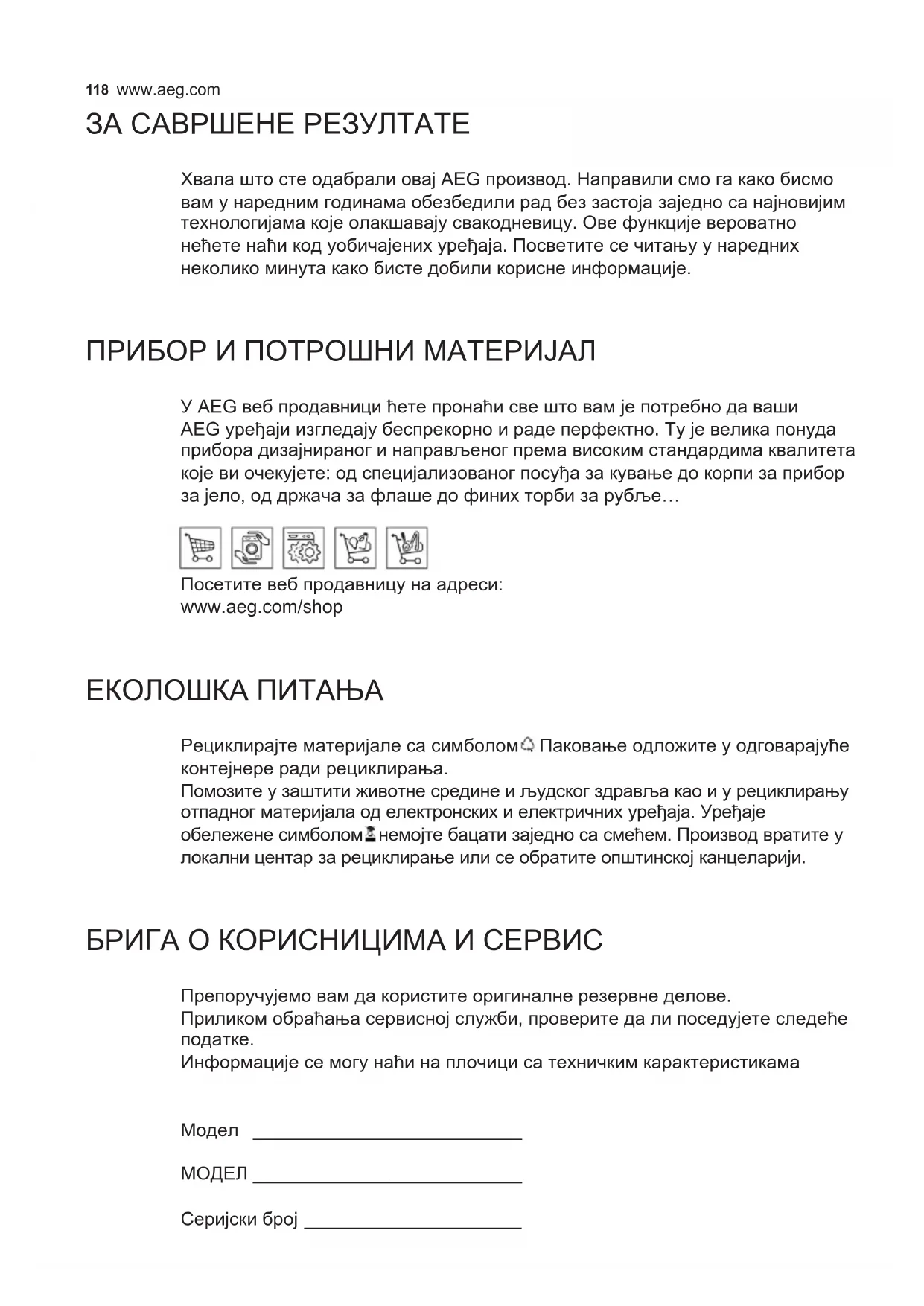 Хвала што сте одабрали овај AEG производ. Направили смо га како бисмо