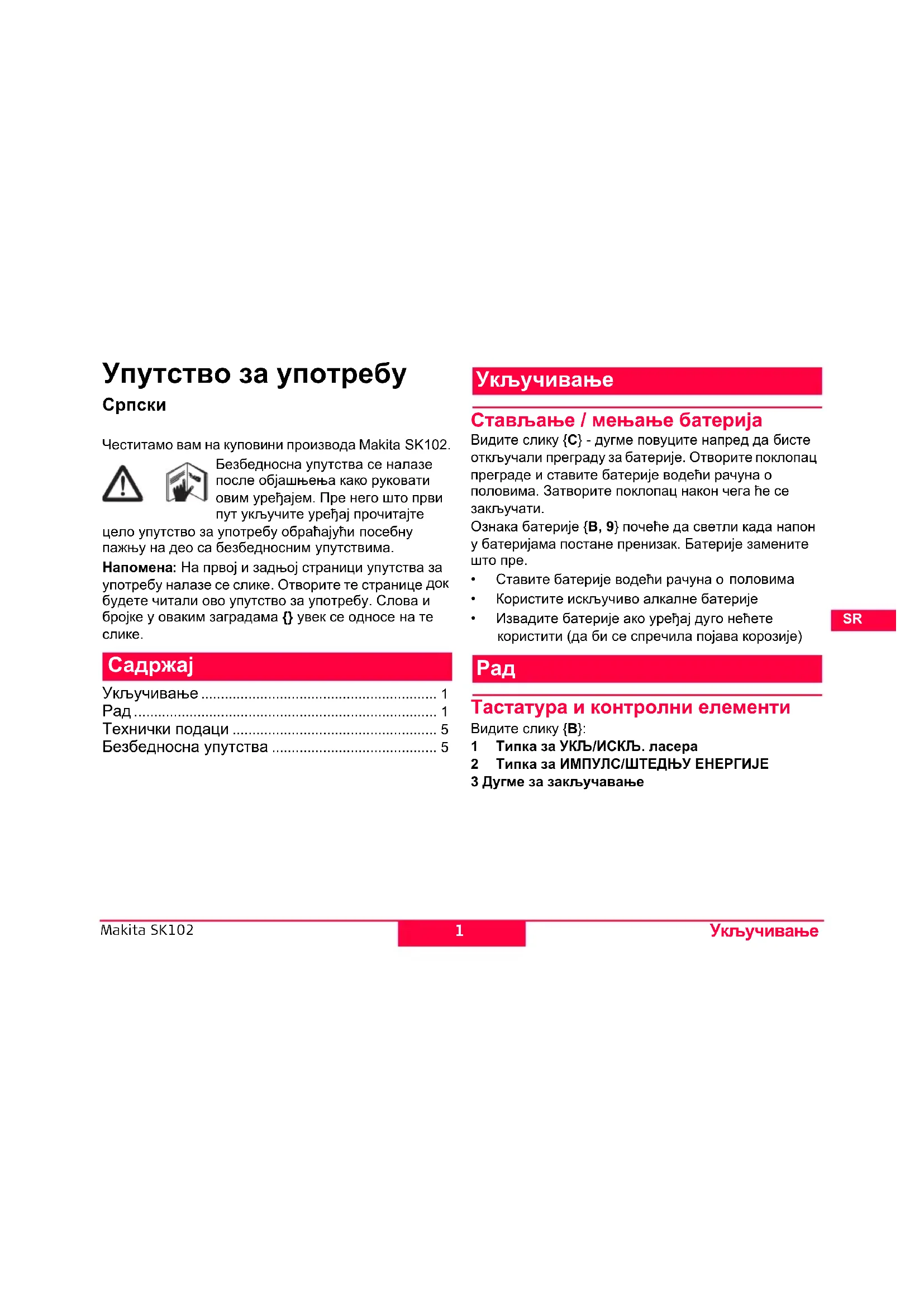 SK102Z - Мерни алат MAKITA - Besplatni korisnički priručnik