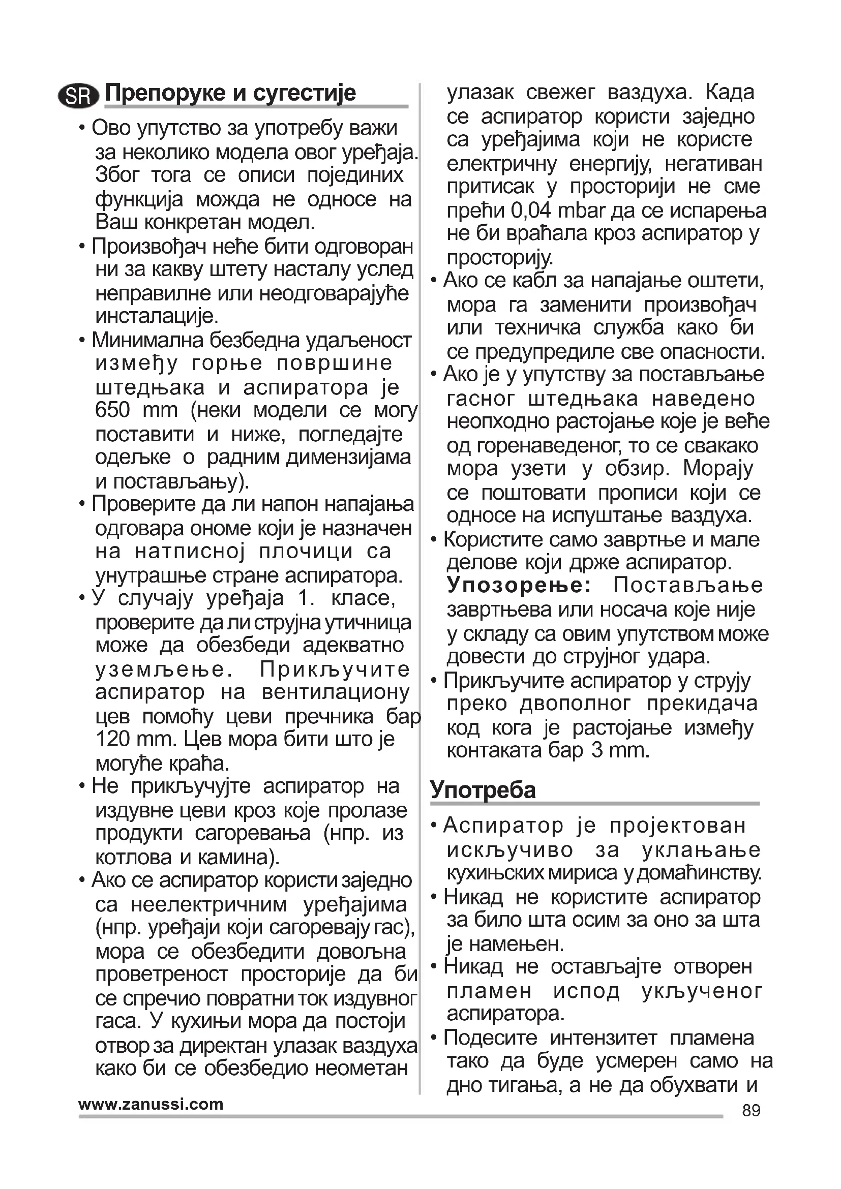 - Аспиратор чистите влажном крпом и неутралним течним детерџентом91 www.zanussi.com