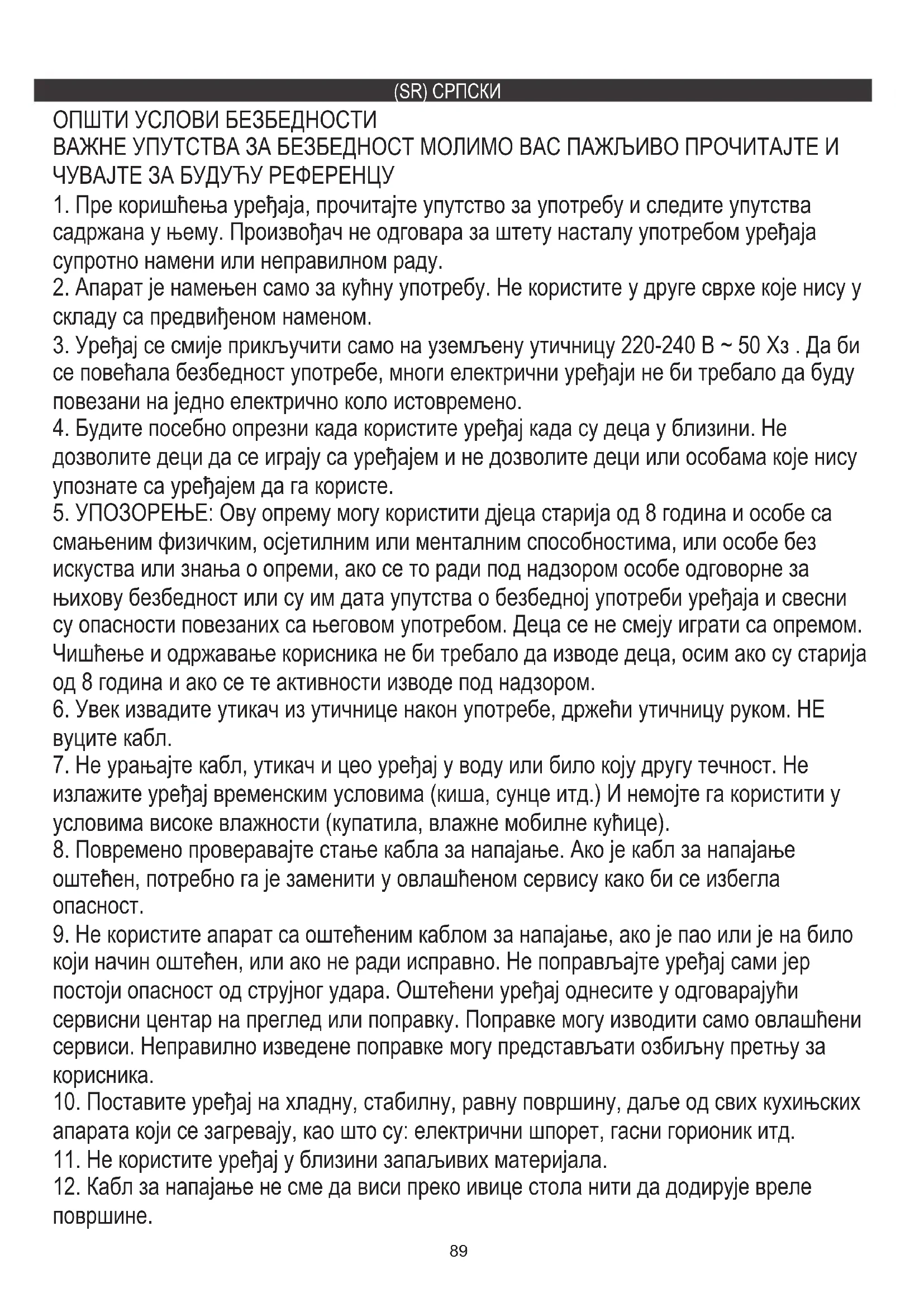 1. Пре коришћења уређаја, прочитајте упутство за употребу и следите упутства