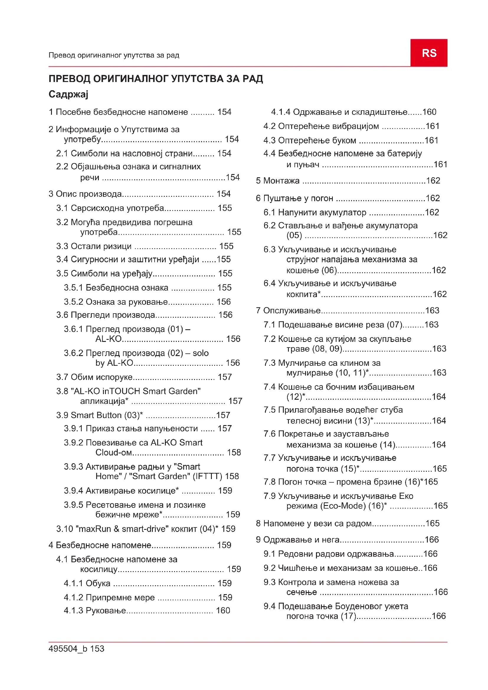 1 Посебне безбедносне напомене .......... 154 2 Информације о Упутствима за употребу.................................................. 154