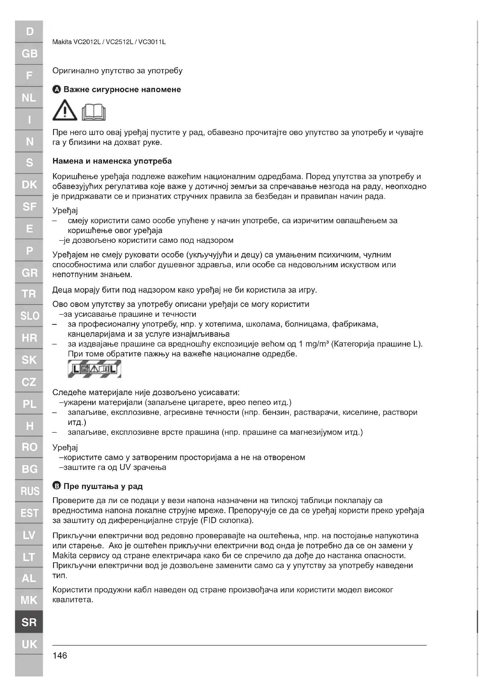 VC2512L - Прашинац MAKITA - Besplatni korisnički priručnik