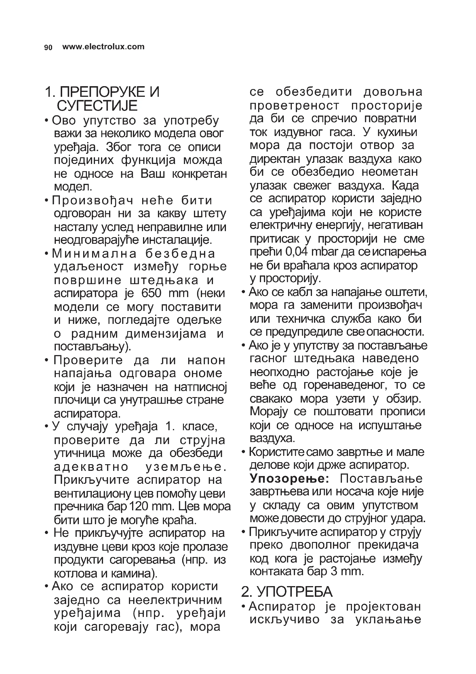 - Аспиратор је пројектован искључиво за уклањање91 SERBIAN кухињских мириса у домаћинству.