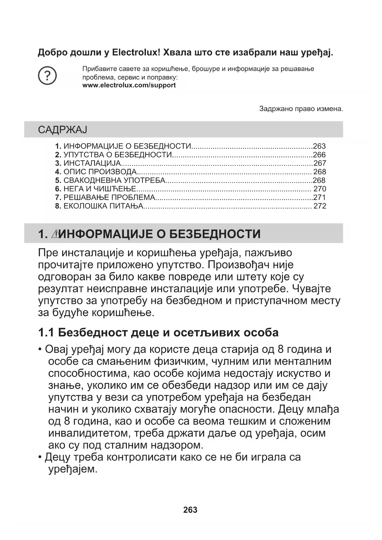 263• Држите сву амбалажу даље од деце и одложите је на одговарајући начин.