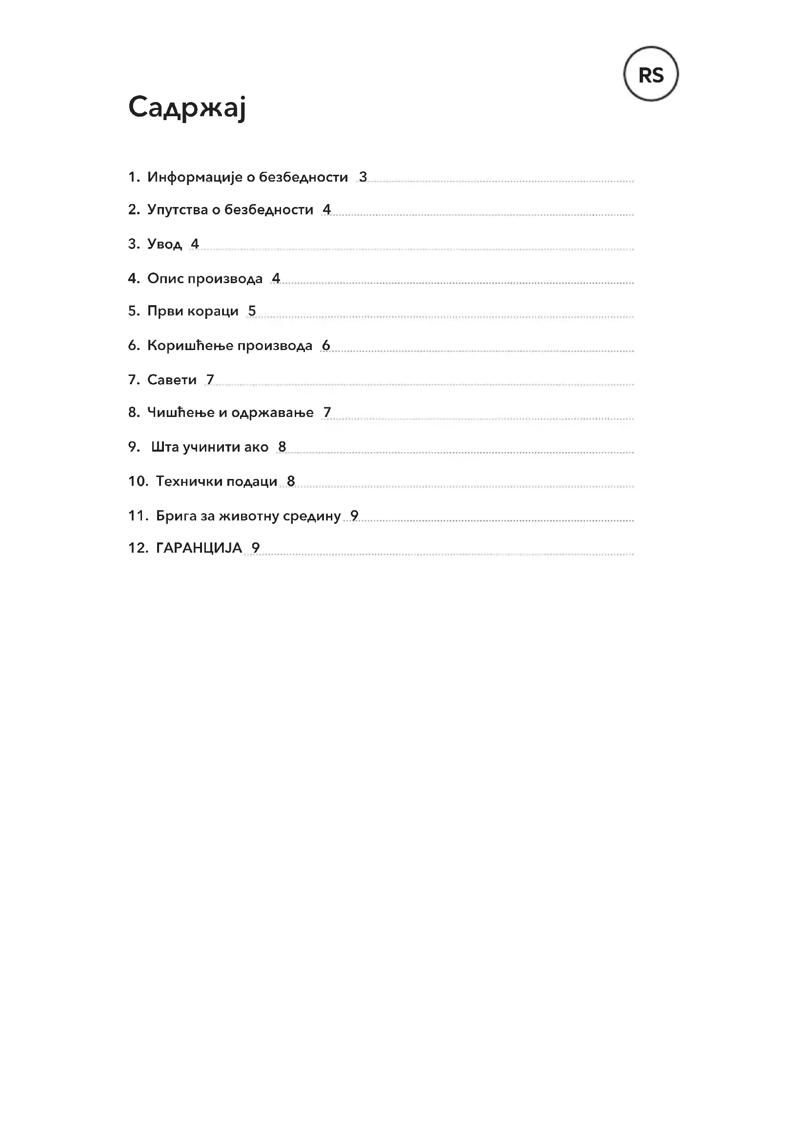 За вашу безбедност и исправан рад уређаја, пре инсталирања и употребе пажљиво прочитајте ово упутство. Увек чувајте ово упутство са апаратом, чак и ако га преместите или продате. Корисници морају у потпуности да познају рад и сигурносне карактеристике уређаја.