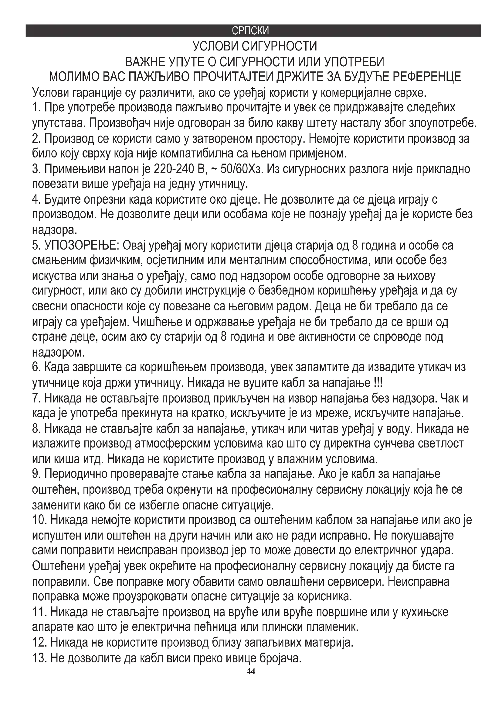 5. УПОЗОРЕЊЕ: Овај уређај могу користити дјеца старија од 8 година и особе са