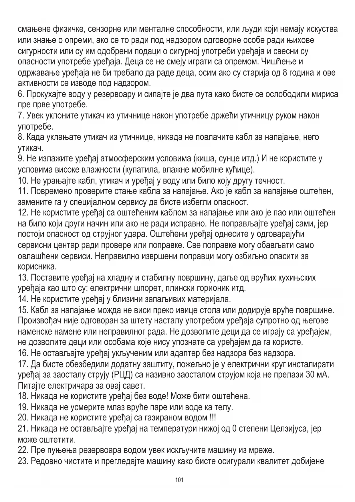20. Никада не користите уређај са газираном водом !!!