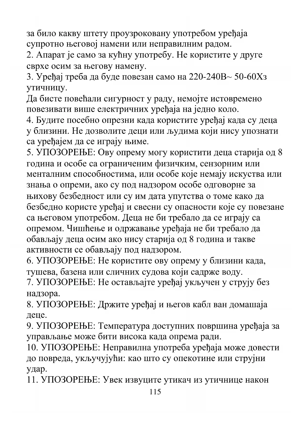 8. УПОЗОРЕЊЕ: Држите уређај и његов кабл ван домашаја