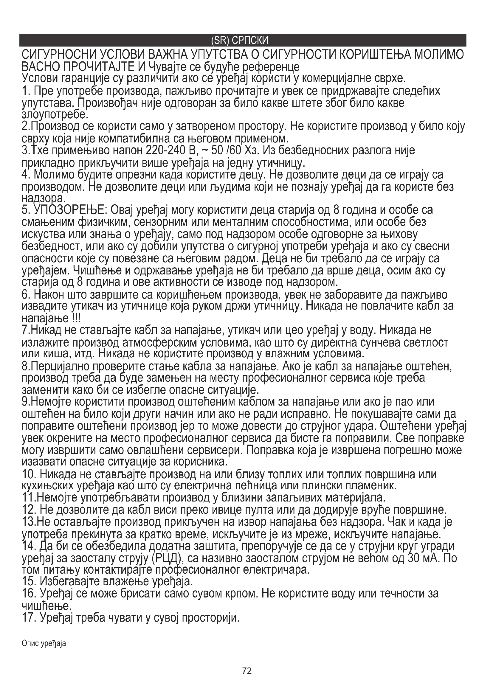5. УПОЗОРЕЊЕ: Овај уређај могу користити деца старија од 8 година и особе са