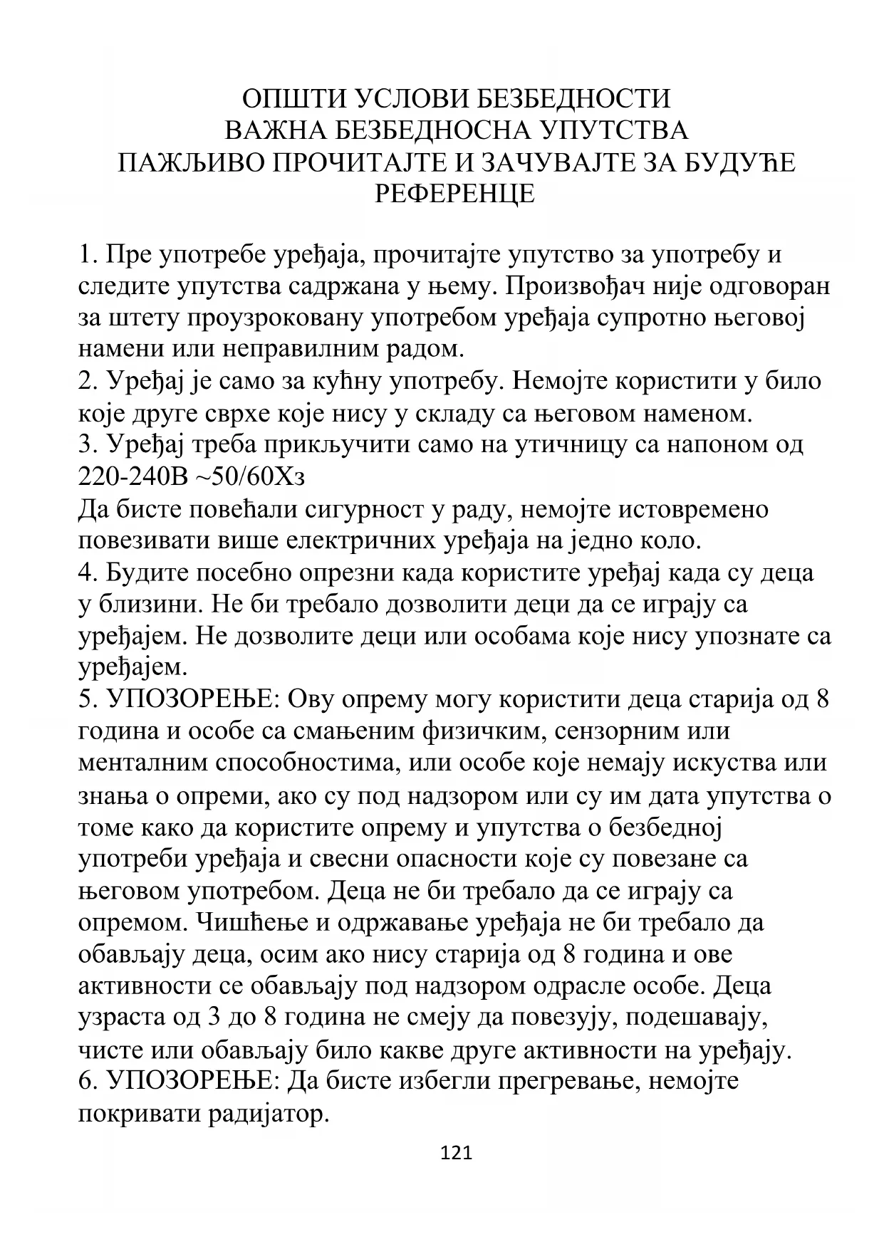 6. УПОЗОРЕЊЕ: Да бисте избегли прегревање, немојте