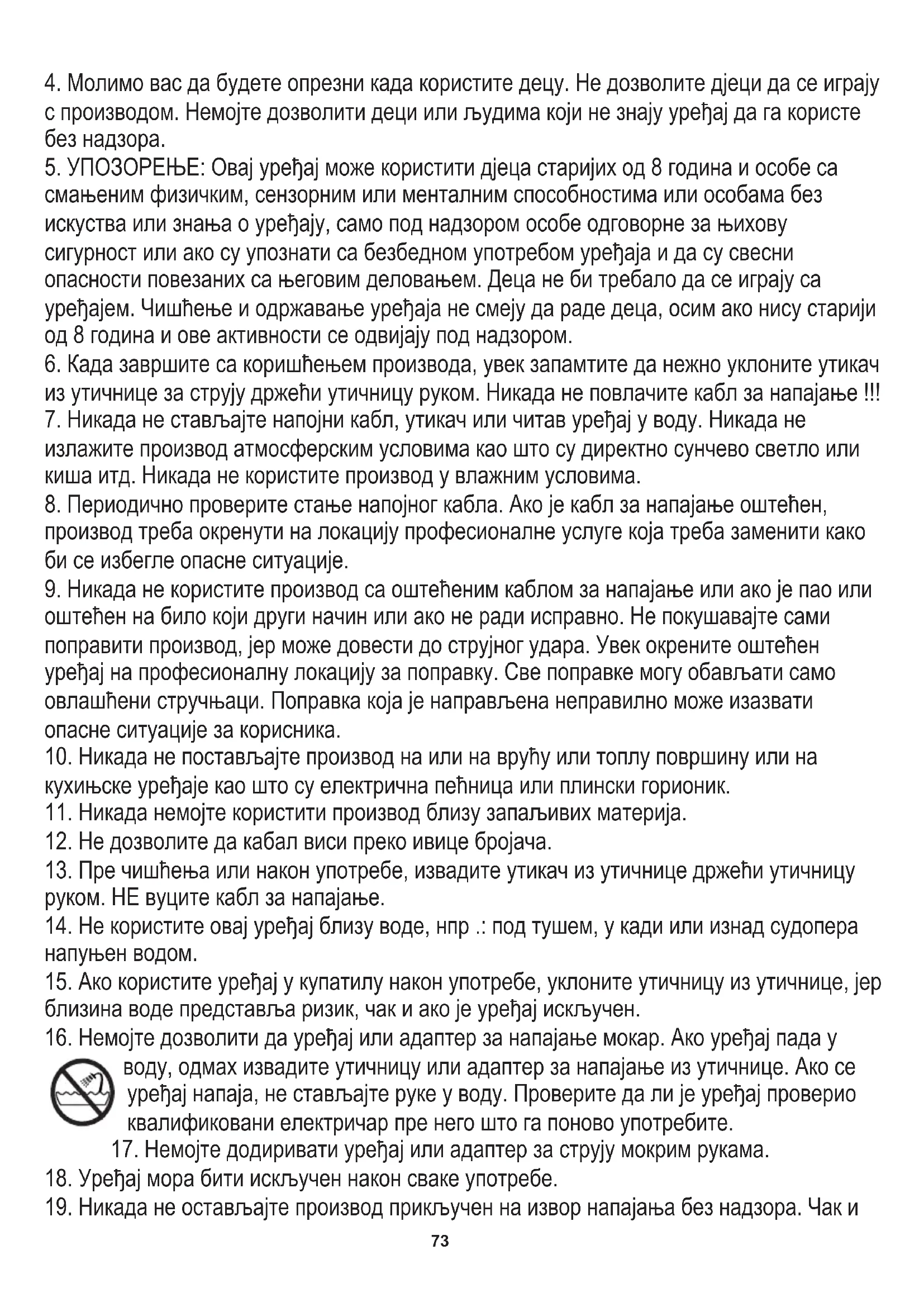 5. УПОЗОРЕЊЕ: Овај уређај може користити дјеца старијих од 8 година и особе са