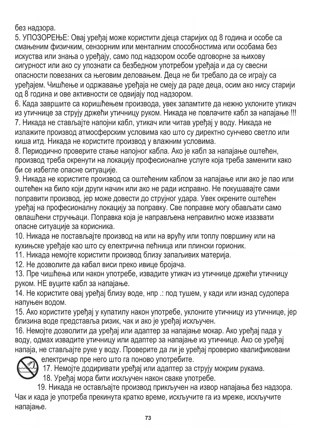 5. УПОЗОРЕЊЕ: Овај уређај може користити дјеца старијих од 8 година и особе са