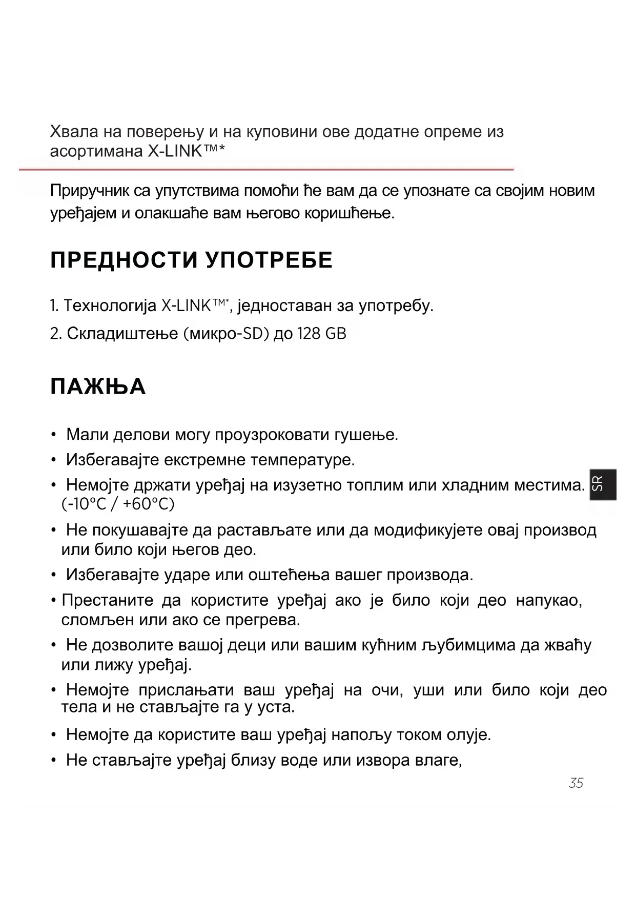 - Не стављајте уређај близу воде или извора влаге, Хвала на поверењу и на куповини ове додатне опреме из асортимана X-LINK™* Приручник са упутствима помоћи ће вам да се упознате са својим новим уређајем и олакшаће вам његово коришћење.36