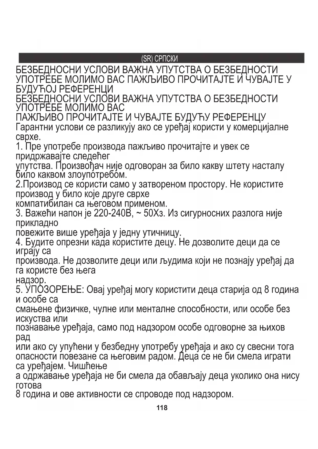 или ако су упућени у безбедну употребу уређаја и ако су свесни тога опасности повезане са његовим радом. Деца се не би смела играти са уређајем. Чишћење а одржавање уређаја не би смела да обављају деца уколико она нису
