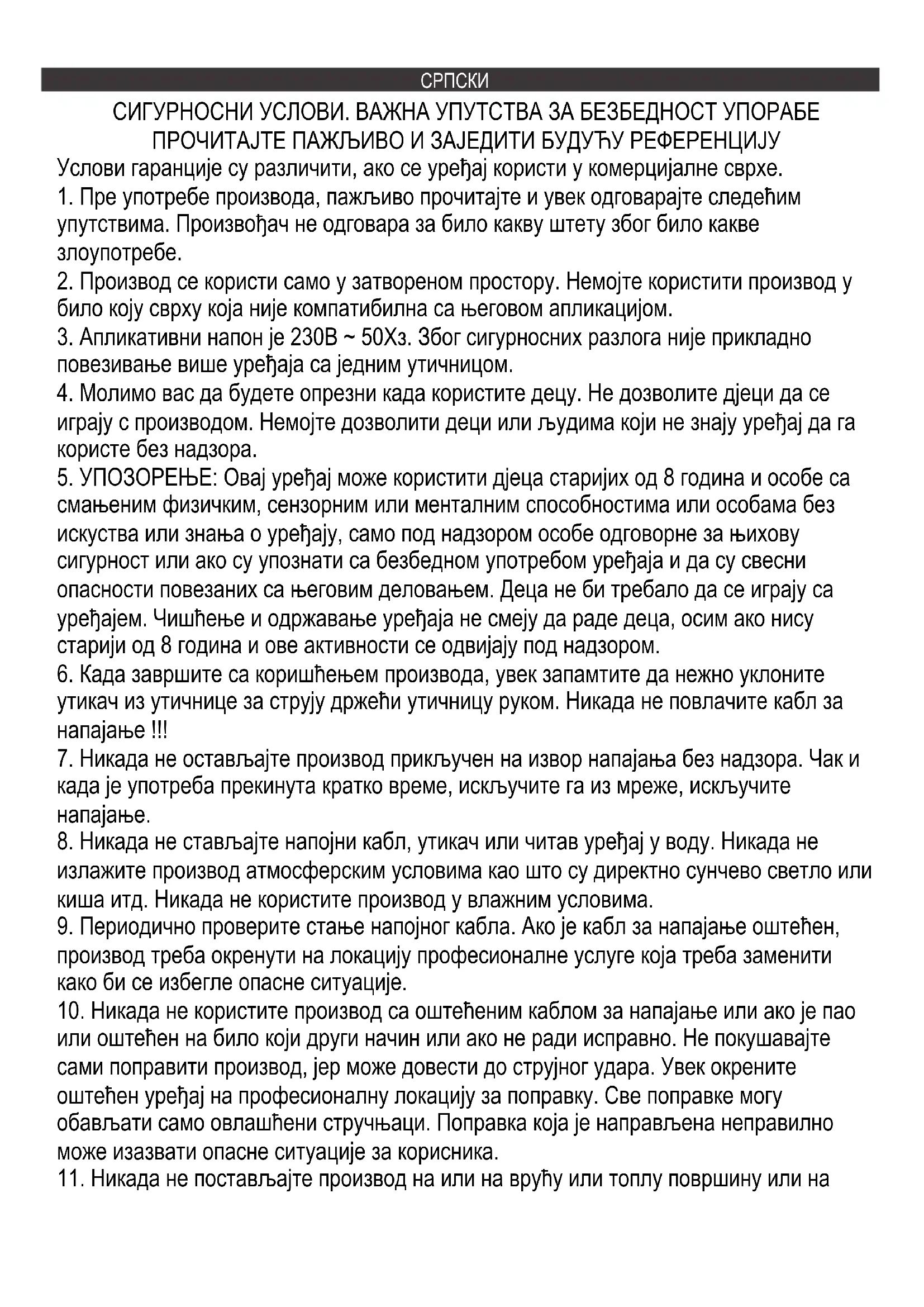 5. УПОЗОРЕЊЕ: Овај уређај може користити дјеца старијих од 8 година и особе са
