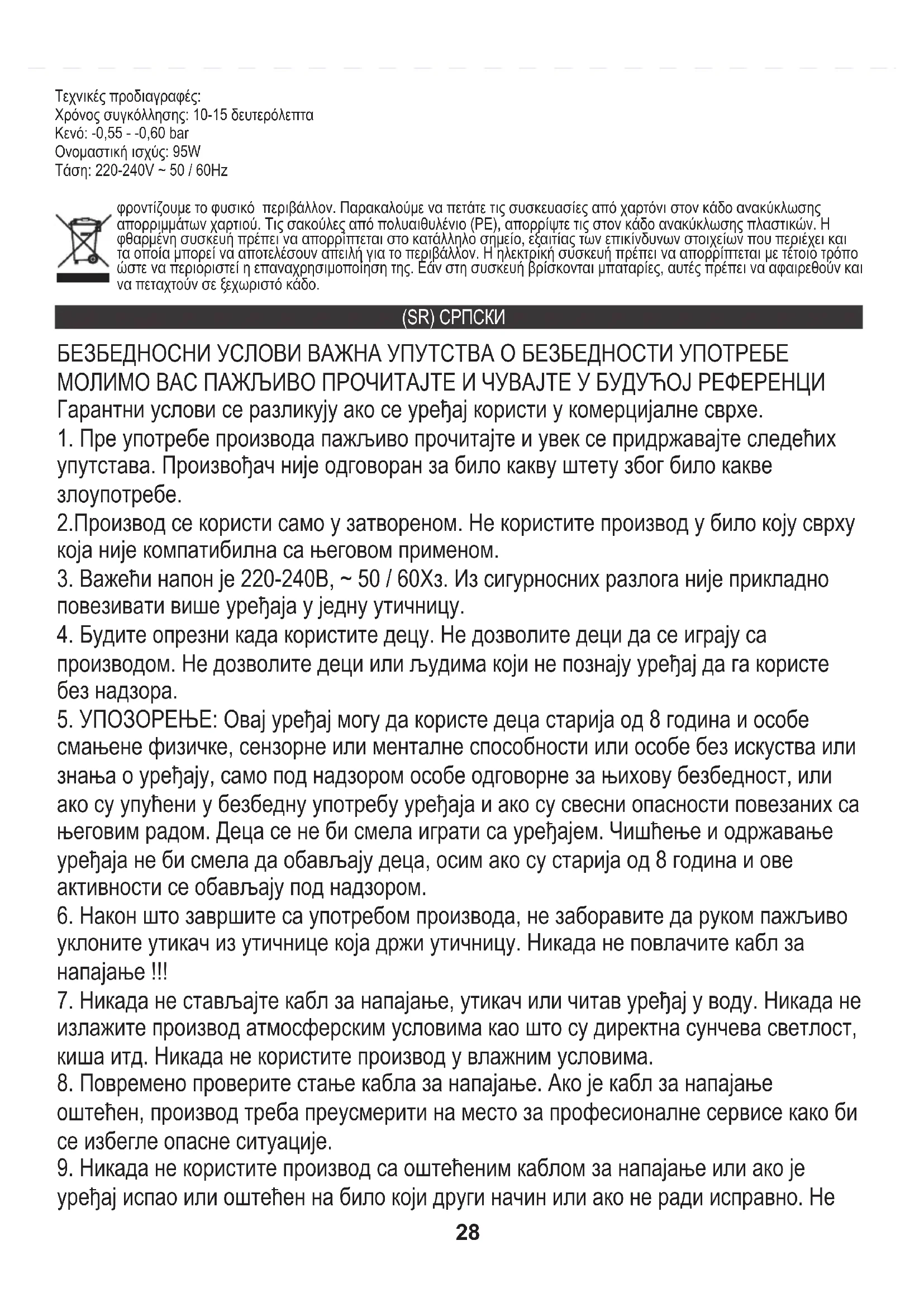 21. Вакуумски заптивач је намењен само за кућну употребу.