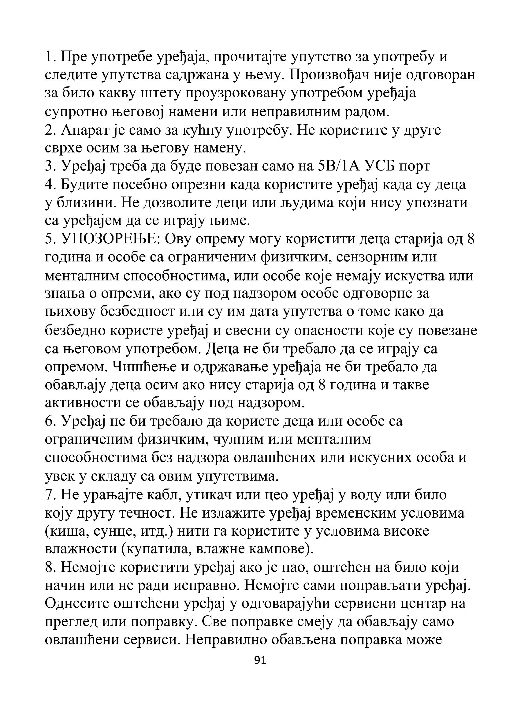 8. Немојте користити уређај ако је пао, оштећен на било који