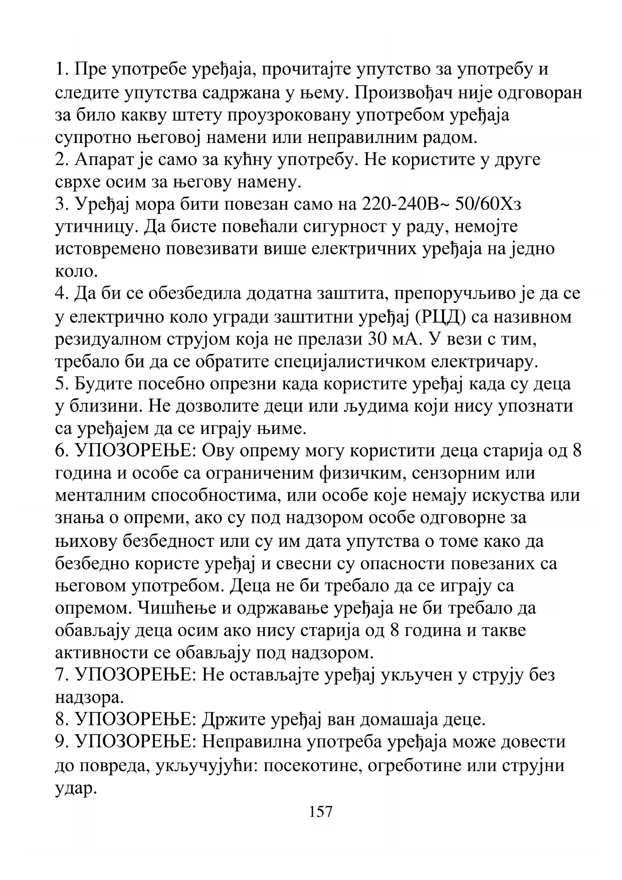 9. УПОЗОРЕЊЕ: Неправилна употреба уређаја може довести
