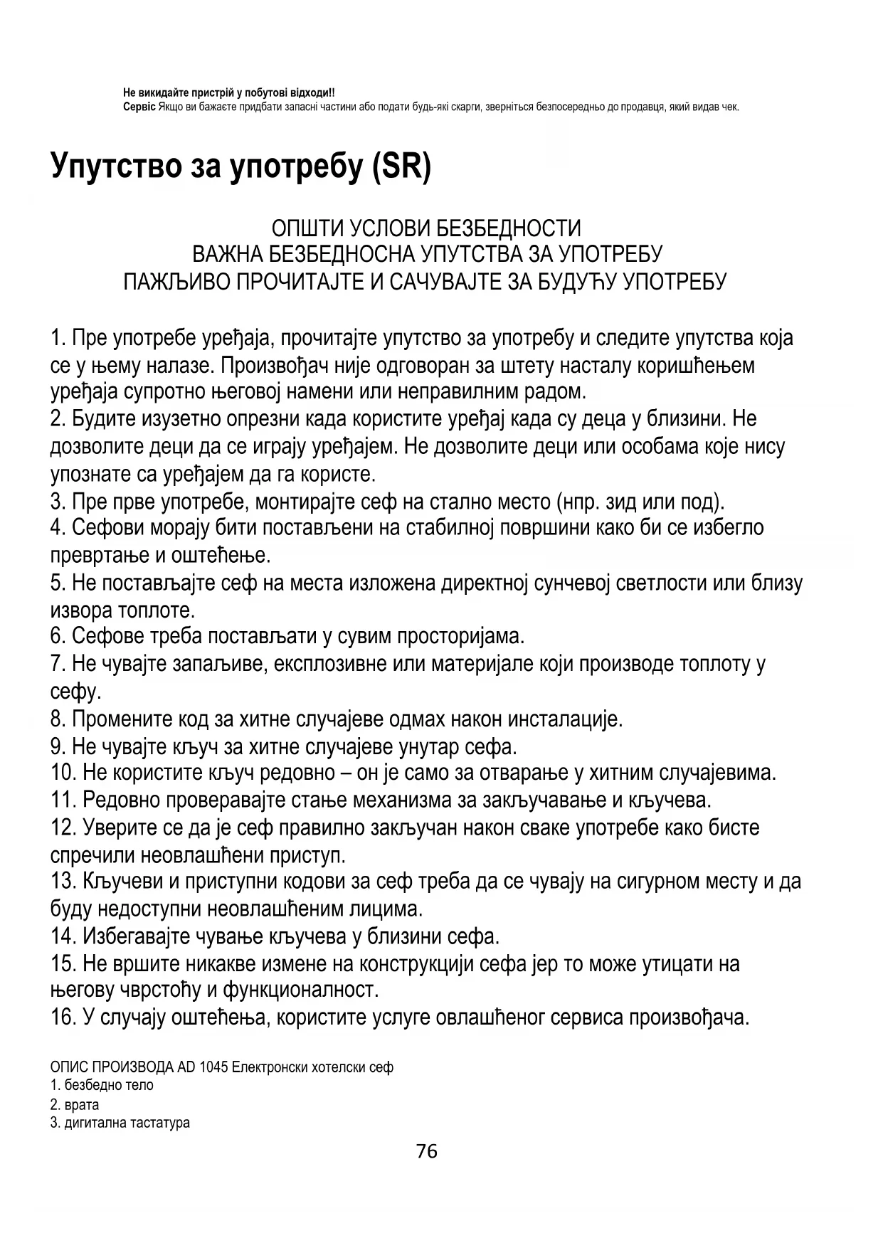 AD 1045 - Сеф ADLER - Besplatni korisnički priručnik
