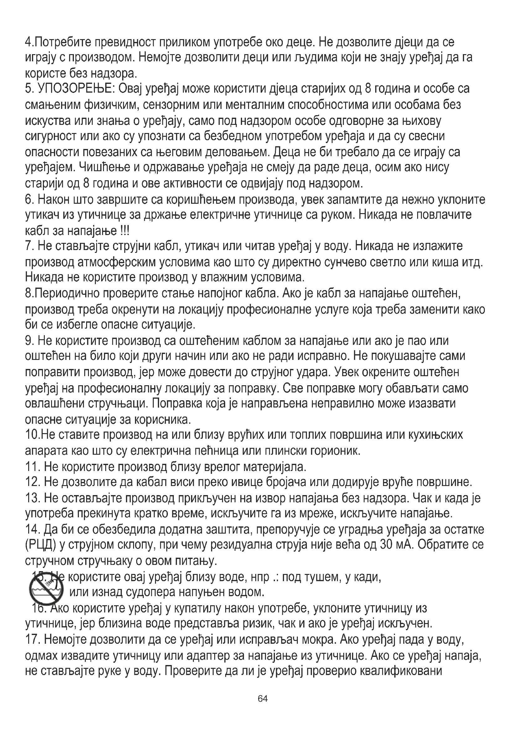 4. Lors de l'utilisation de l'appareil, il faut être particulièrement prudent s'il y a des enfants à proximité. Ne pas laisser les enfants jouer avec l'appareil. N'autoriser l'utilisation de l'appareil ni aux enfants ni aux personnes ne connaissant pas ce produit.