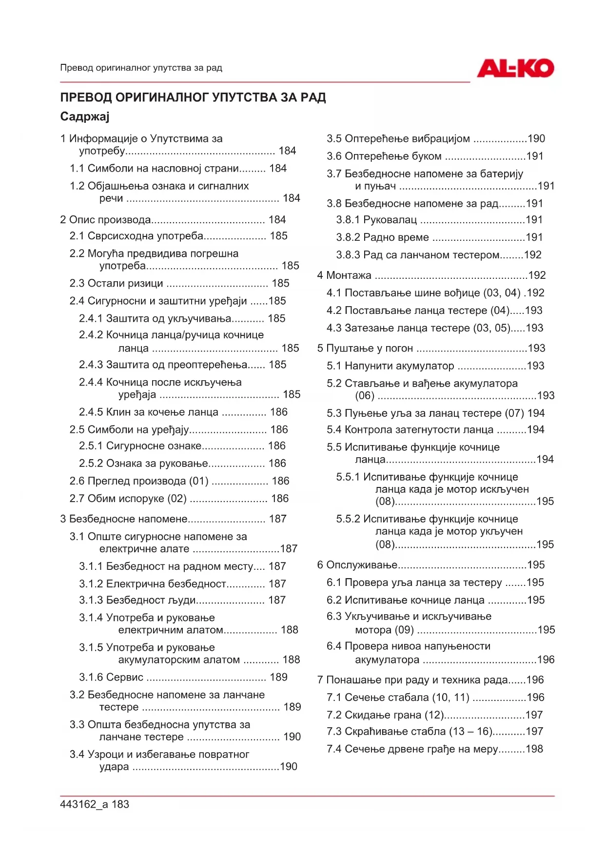 8.1 Оштрење ланца тестере (17) .......... 198