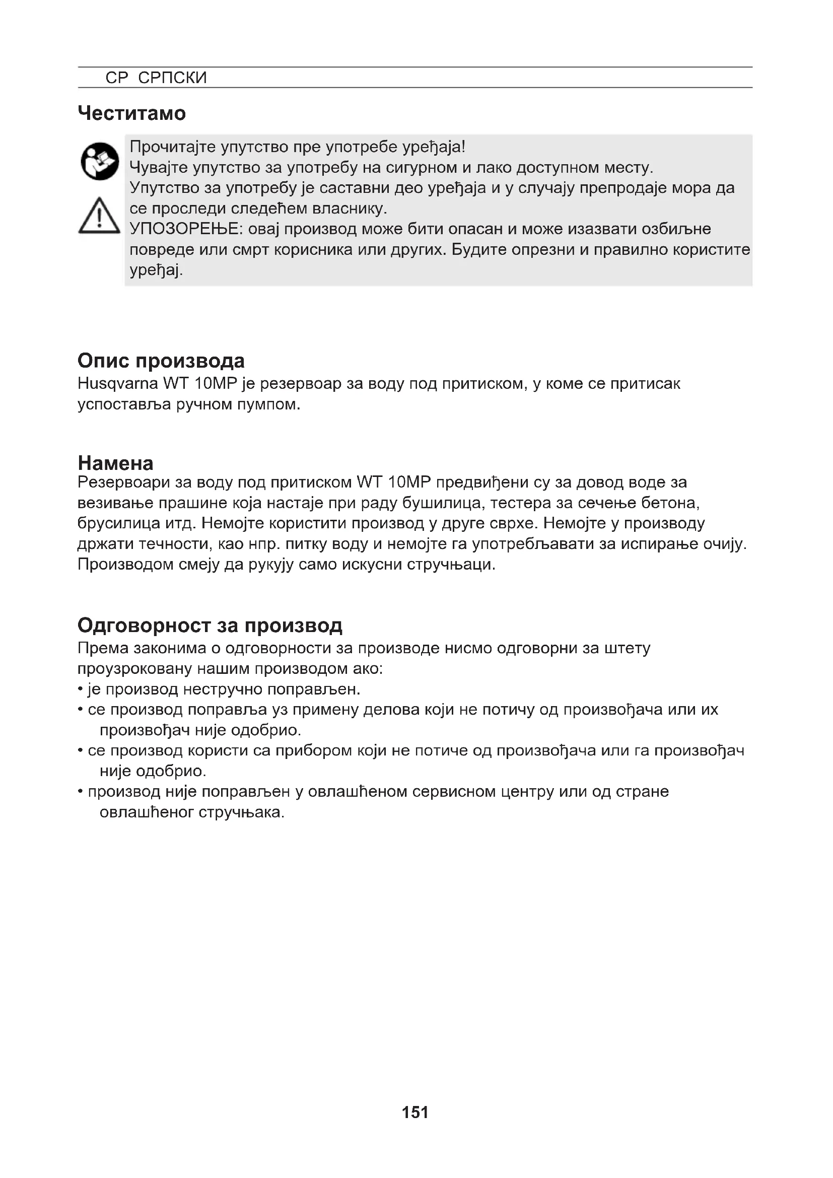 СР СРПСКИ156 157 Оригинално упутство за рад