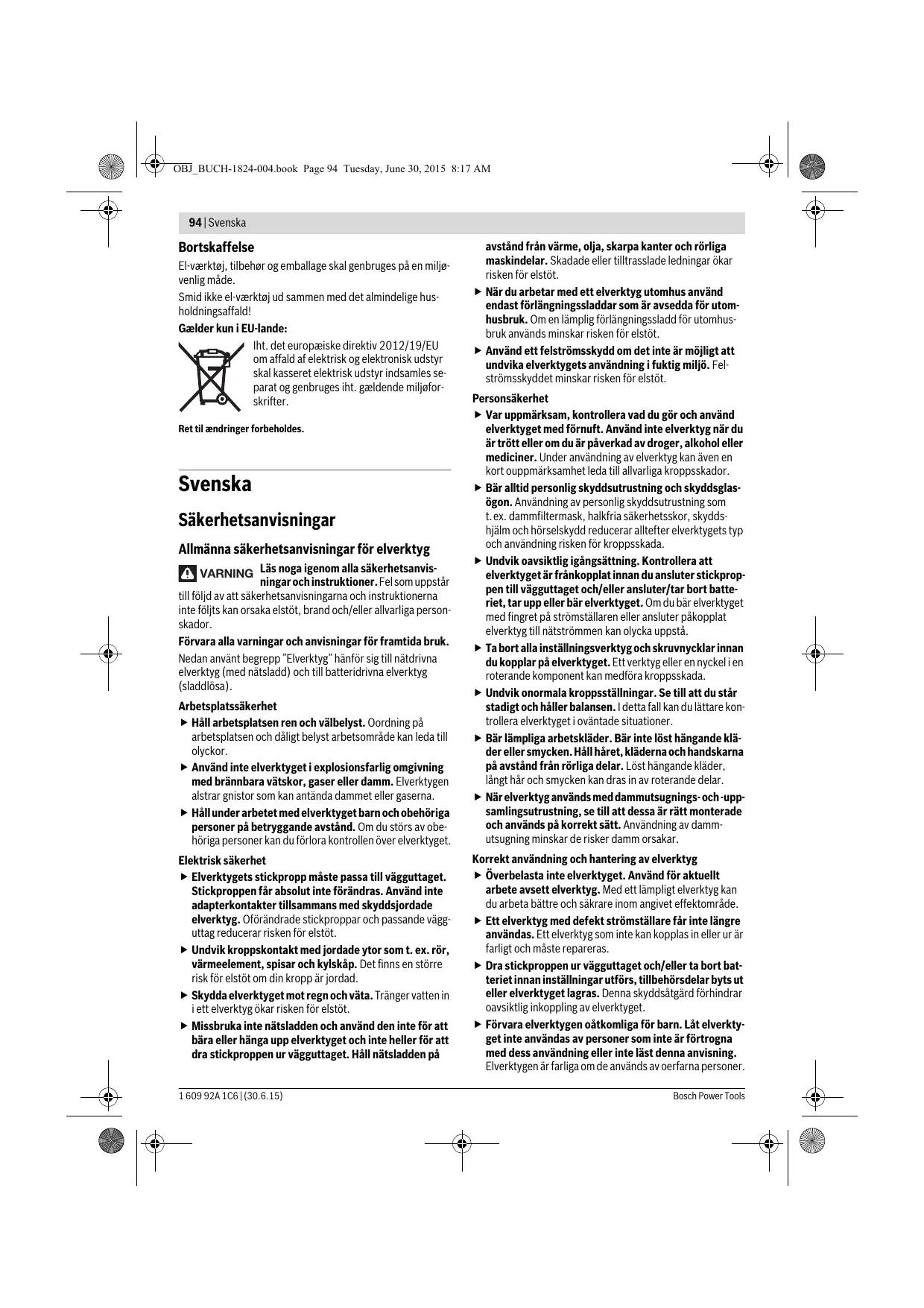 m/s2 m/s2 8,0 1,5 8,0 1,5 8,0 1,5 8,0 1,5 8,0 1,5 8,0 1,5 m/s2 m/s2 5,5 1,5 5,5 1,5 5,5 1,5 5,5 1,5 5,5 1,5 5,5 1,5 1 609 92A 1C6 | (30.6.15) OBJ_BUCH-1824-004.book Page 98 Tuesday, June 30, 2015 8:17 AM 98 | Svenska Bullernivåvärde förmedlas enligt EN 60745-2-3. Verktygets A-vägda ljudnivå är i typiska fall Ljudtrycksnivå Ljudeffektnivå Onoggrannhet K Använd hörselskydd! Totala vibrationsemissionsvärden ah (vektorsumma ur tre riktningar) och onoggrannhet K framtaget enligt EN 60745-2-3: Ytslipning (skrubbning):
