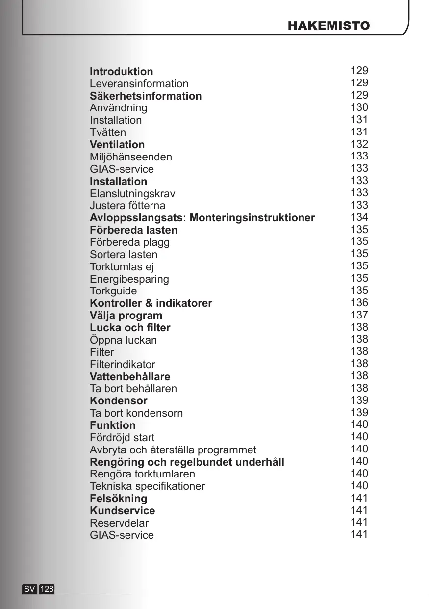 - Installera ALDRIG torktumlaren mot ett draperi. SV 132