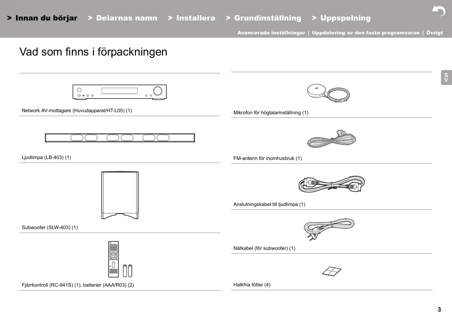 Innan du börjar Vad som finns i förpackningen 3