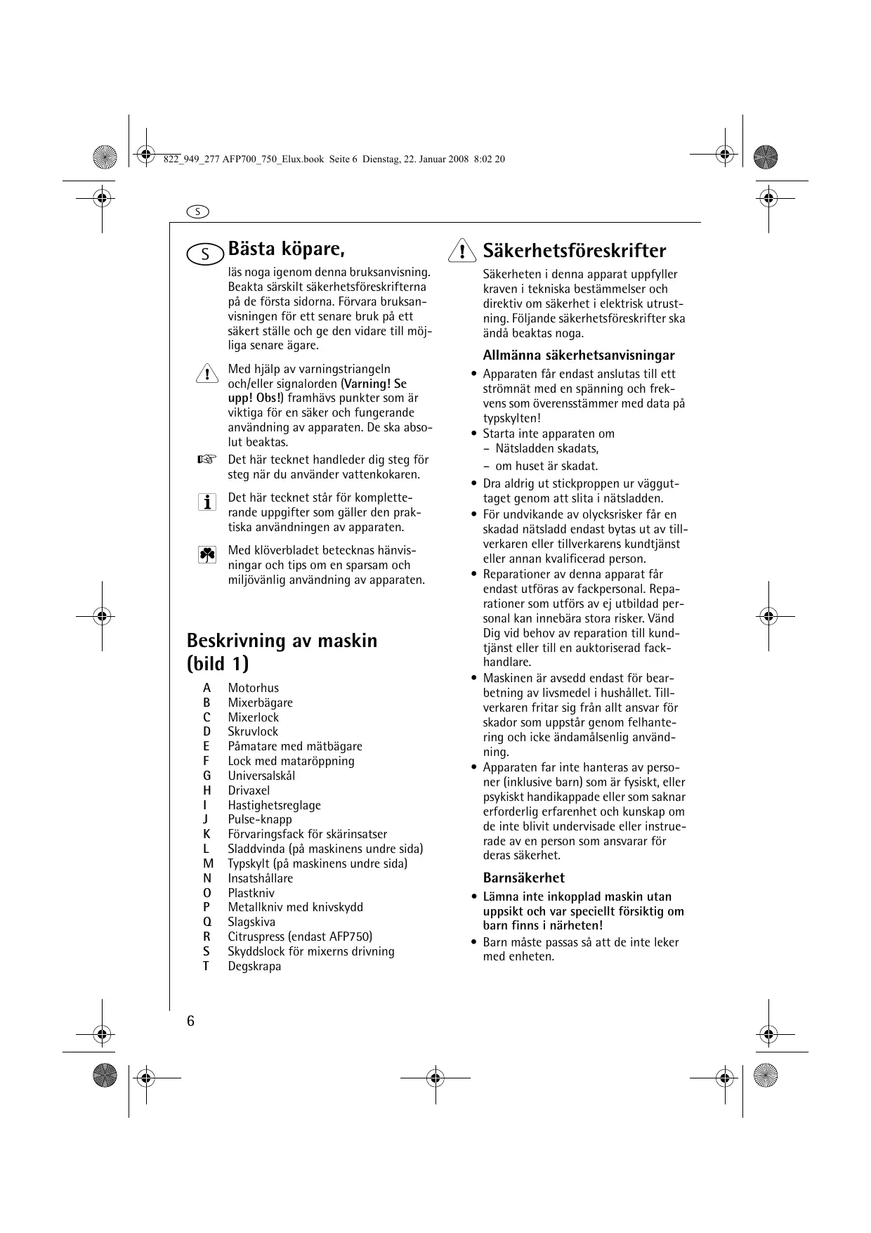 BRUKSANVISNING AFP700 AEG-ELECTROLUX