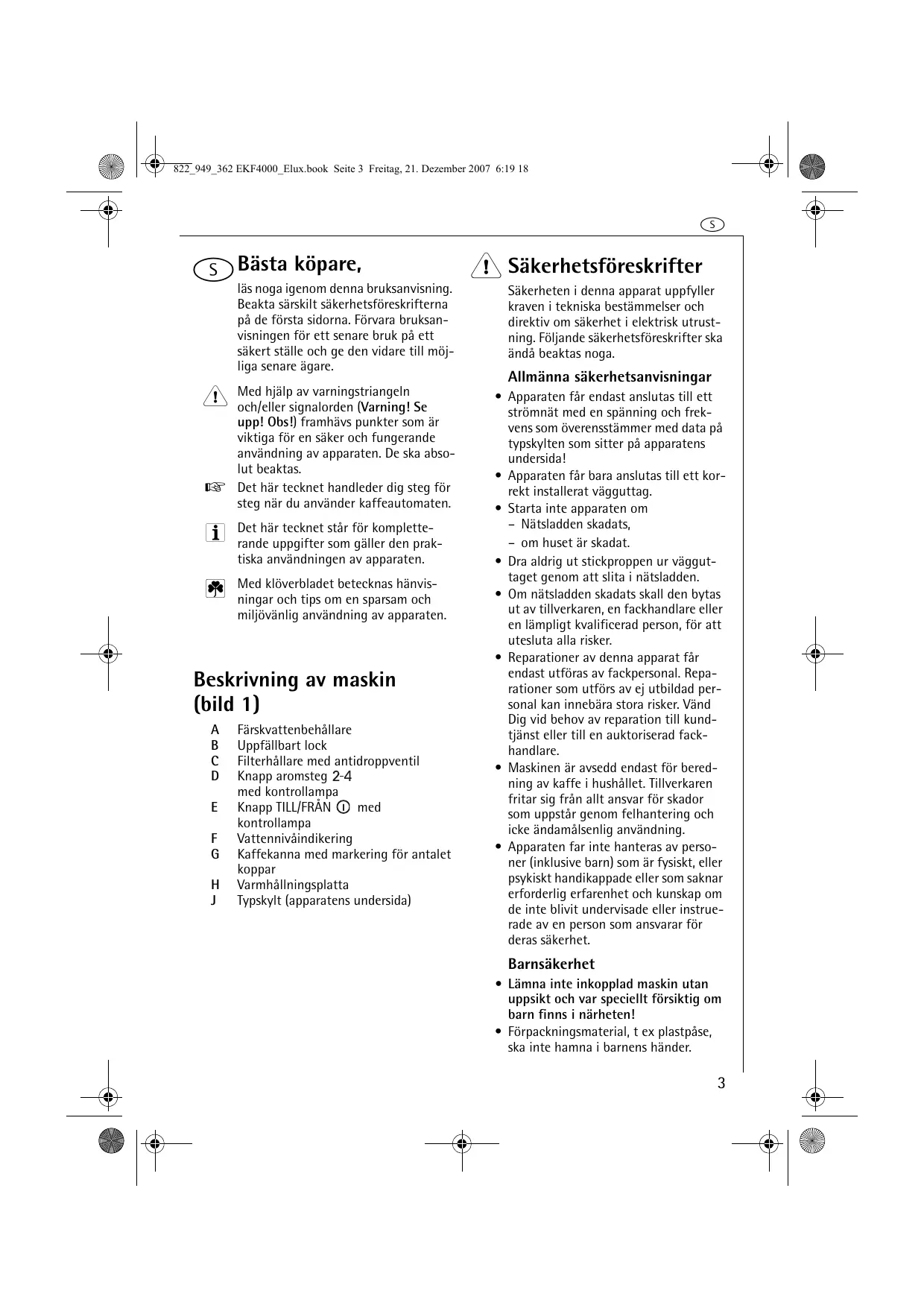 ! Sakerhetsföreskrifter