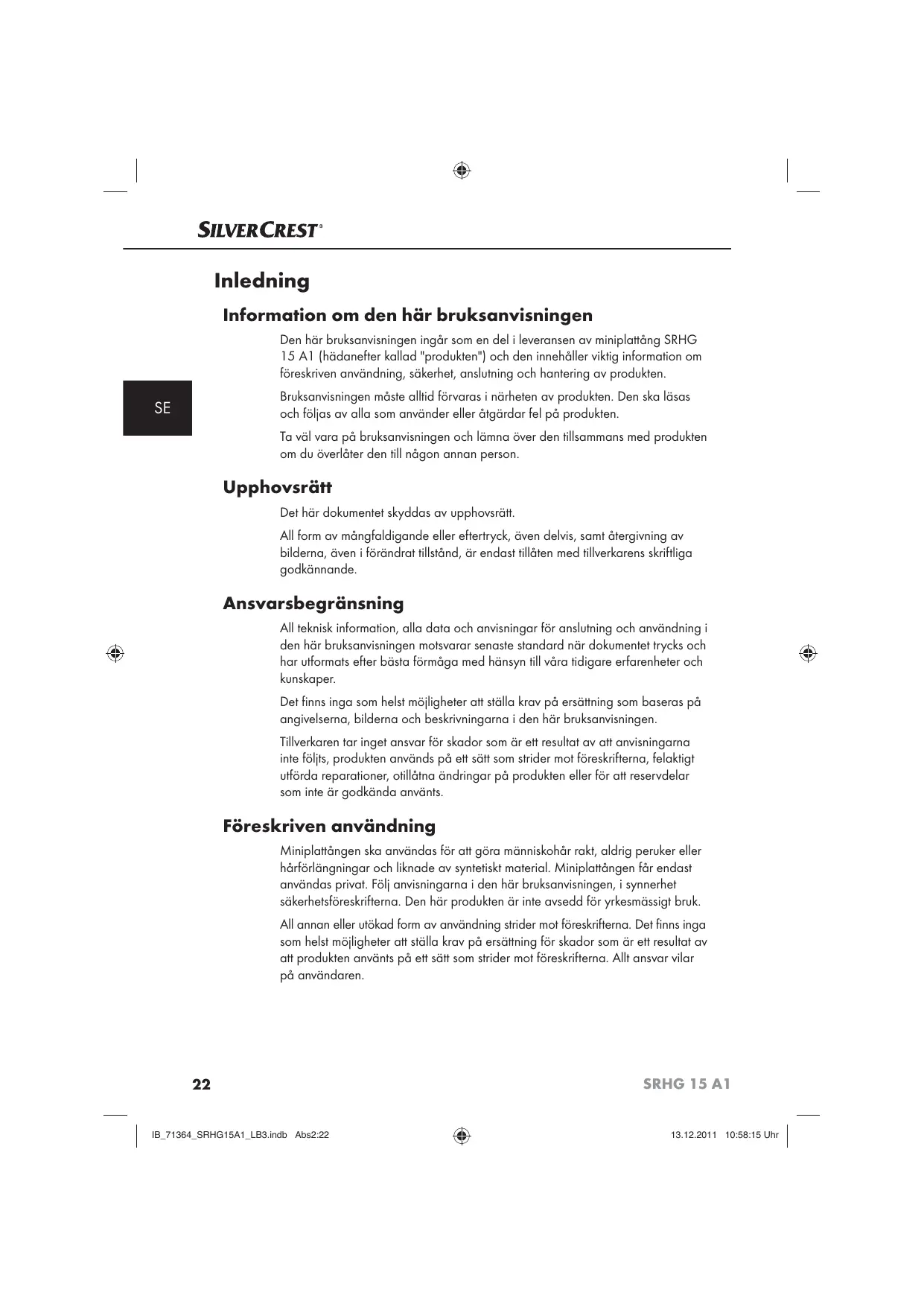 Hitta enhetens manual gratis SRHG 15 A1 SILVERCREST i PDF-format.