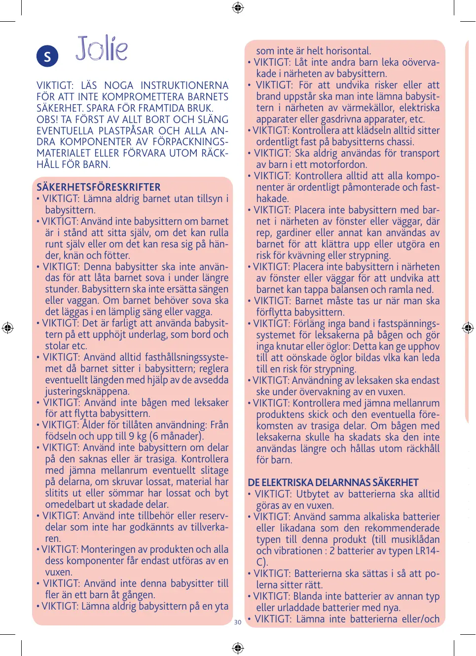 BRUKSANVISNING JOLIE CHICCO