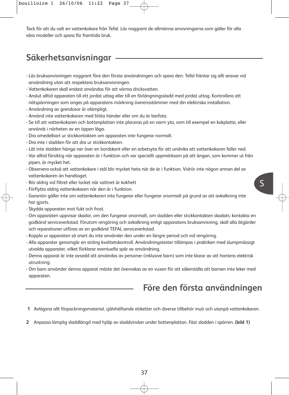 BRUKSANVISNING KETTLE TEFAL