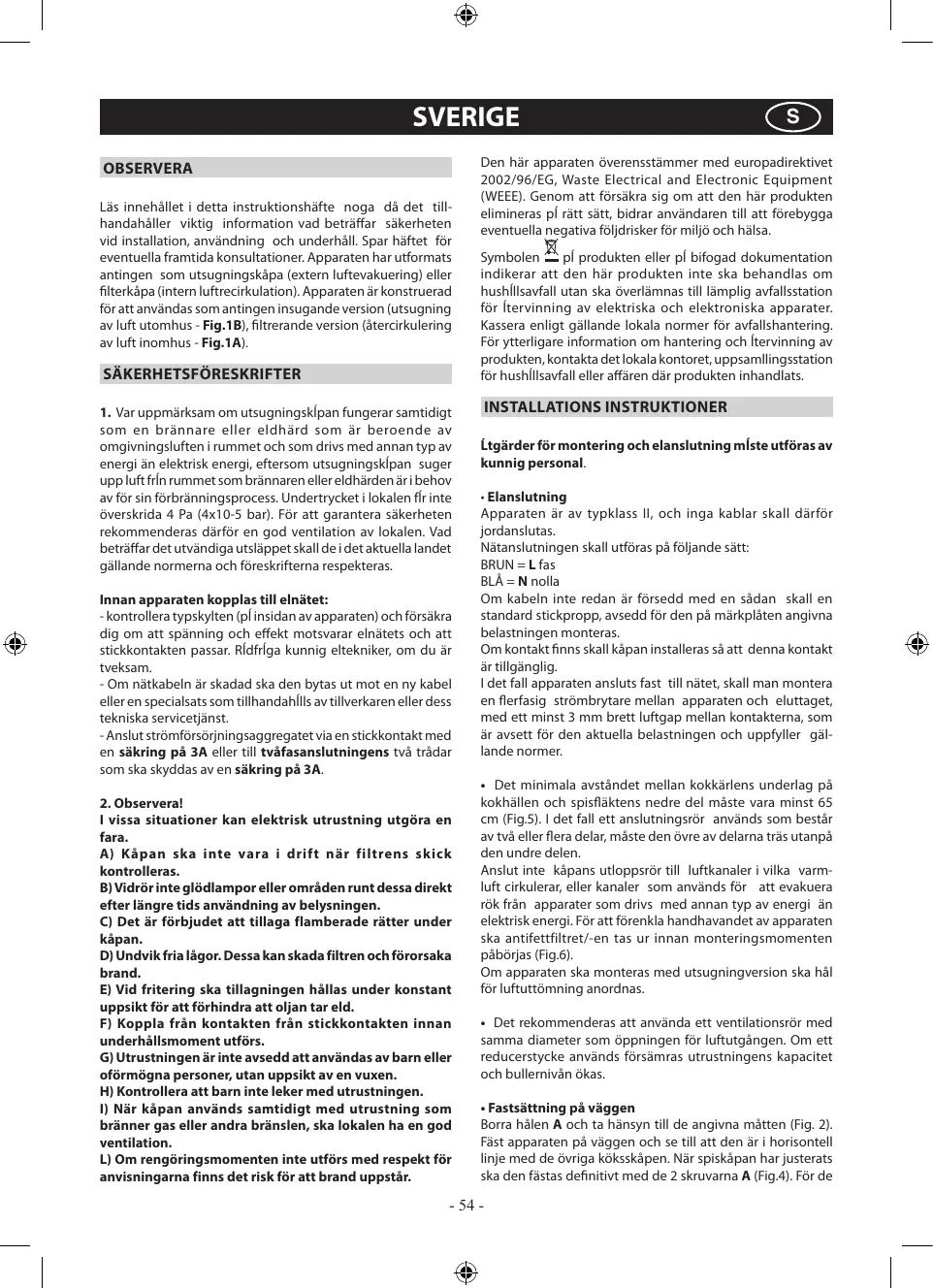 1. Attention, lorsque dans la même pièce vous utilisez simultanément la hotte à évacuation avec un brûleur ou une cheminée alimentés par une énergie autre que l’électricité, vous pouvez créer un problème “d’inversion de flux”. Dans ce cas la hotte aspire l’air nécessaire à leur combustion. La dépression dans le local ne doit pas dépasser les 4 Pa (4x10-5 bar). Pour un fonctionnement en toute sécurité, n’oubliez pas de prévoir une ventilation suffisante du local. Pour l’évacuation vers l’extérieur, veuillez vous référer aux dispositions en vigueur dans votre pays.