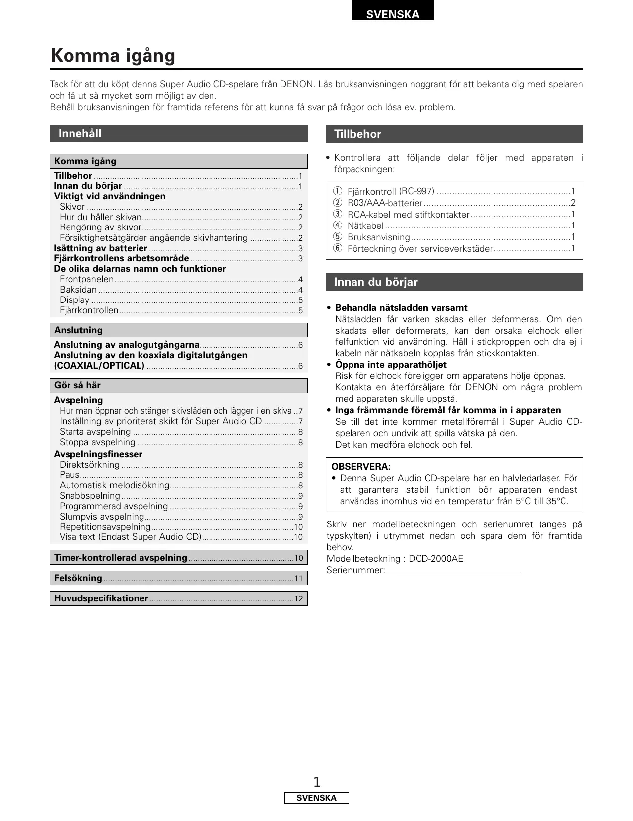 BRUKSANVISNING DCD-2000AE DENON
