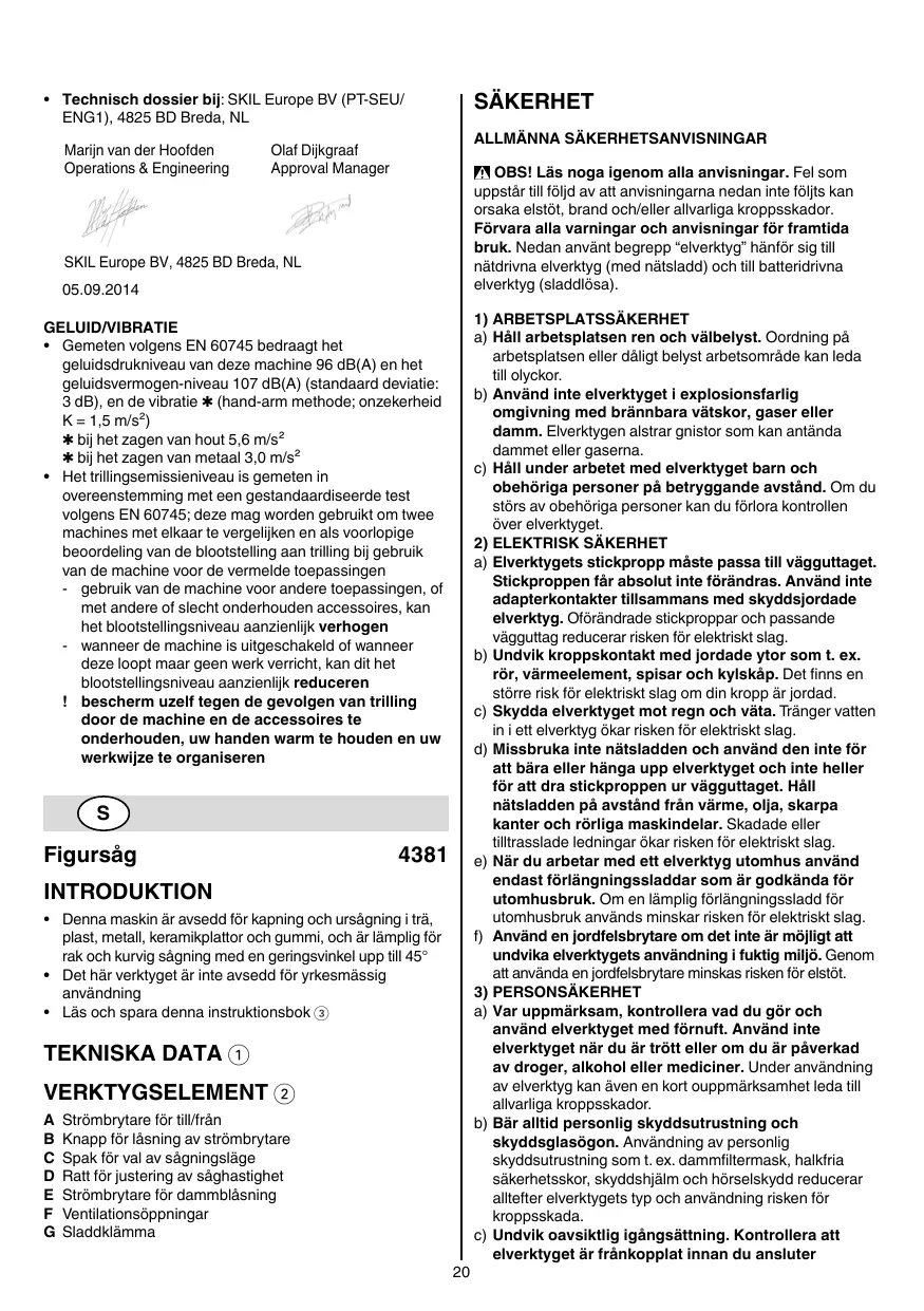 Ladda ner instruktionerna för din Elektrisk såg i PDF-format gratis! Hitta din manual 4381 - SKIL och ta tillbaka ditt elektroniska enhet i hand. På denna sida publiceras alla dokument som behövs för att använda din enhet. 4381 av märket SKIL.