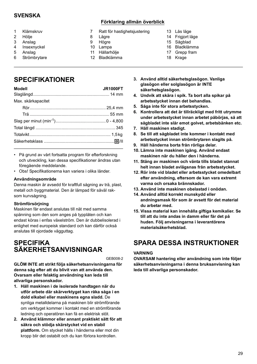 BRUKSANVISNING JR1000FT MAKITA