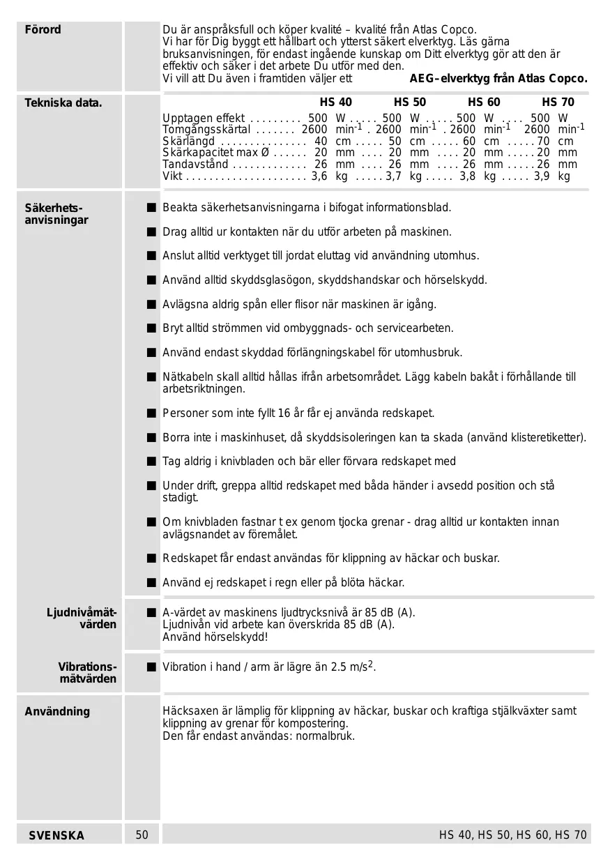 | SVENSKA | 52 | HS 40, HS 50, HS 60, HS 70 |