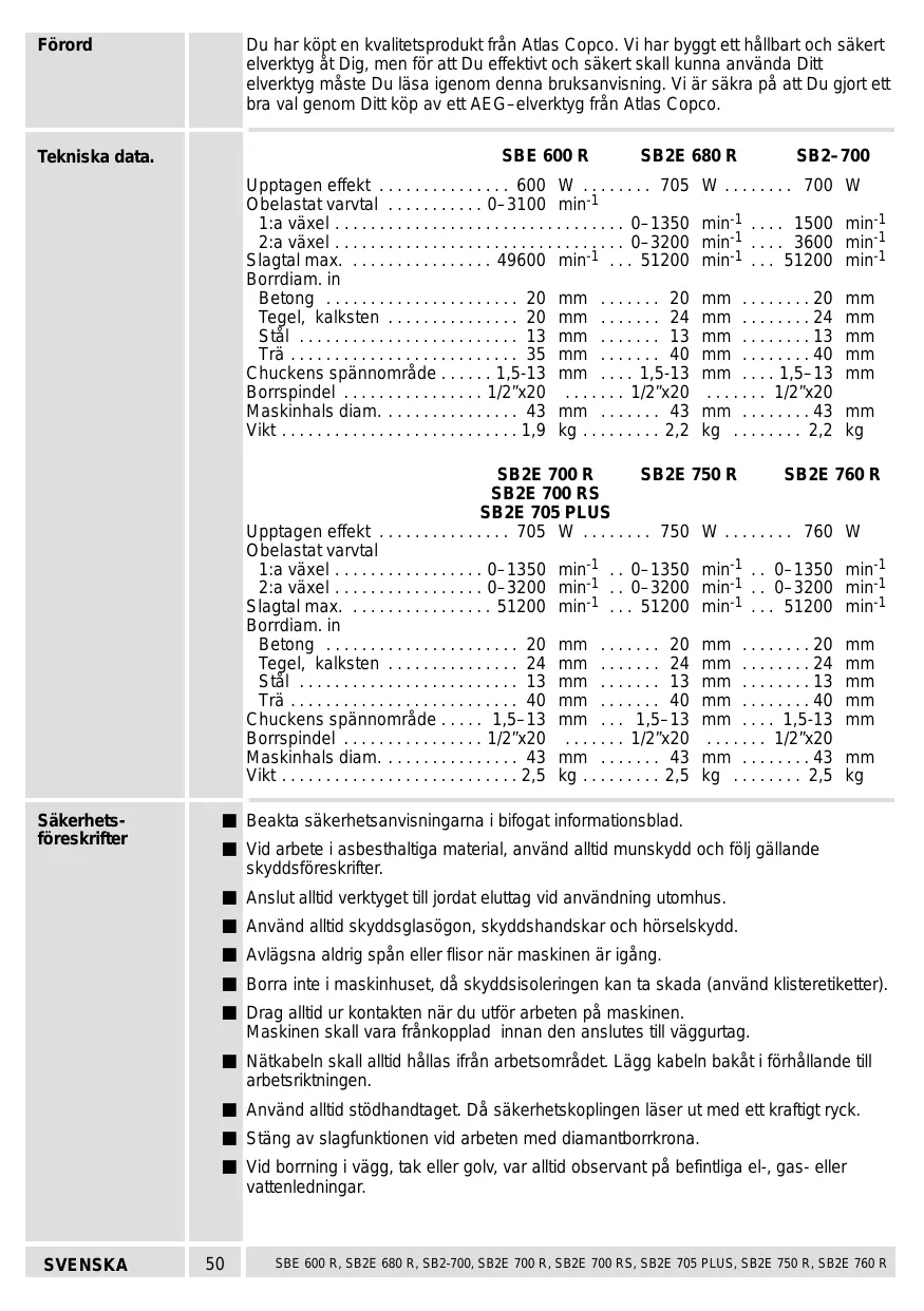 (pas sur SB2–700) Accouplement de sécurité intégré empêchant l’entraînement de la machine en cas de blocage du foret. (uniquement sur SB2E 700 RS, SB2E 705 PLUS)