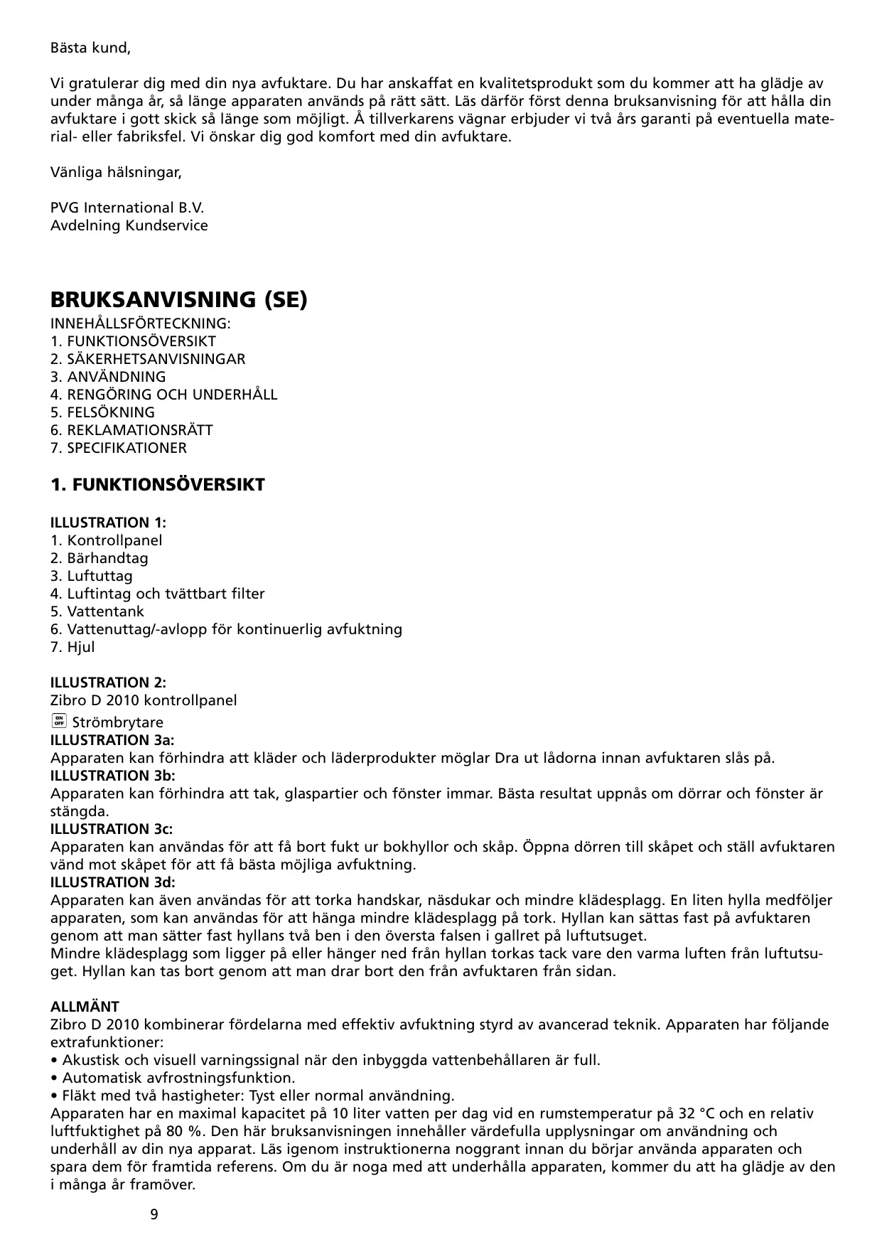 L’appareil permet d’éliminer les mauvaises odeurs des bibliothèques et des armoires. Pour une déshumidification efficace, ouvrez le meuble et placez l’appareil devant. ILLUSTRATION 3d: L’appareil peut également s’utiliser pour sécher gants, mouchoirs et autres petits vêtements. Accrochez les vêtements à sécher sur le petit étendage fourni avec l’appareil. Pour le fixer sur le déshumidificateur, placer les deux pieds de l’étendage sur la rainure située en haut de la grille de la sortie d’air. Pour sécher des vêtements de très petite taille déposés ou accrochés sur l’étendage, vous pouvez aussi utiliser la sortie d’air chaud. Pour décrocher l’étendage du déshumidificateur, appuyez sur les côtés. GÉNÉRALITÉS Zibro D 2010 assure une déshumidification très efficace grâce à une technologie avancée. L’appareil est équipé des fonctions suivantes: • Signal d’avertissement sonore et visuel lorsque le réservoir d’eau intégré est plein. • Fonction de dégel automatique. • Ventilateur à deux vitesses: silencieux ou normal. L’appareil a une capacité maximum de 10 litres d’eau par jour à une température ambiante de 32° C et à un taux d’humidité relative de 80%. Ce manuel contient des informations importantes pour l’utilisation et l’entretien de votre nouvel appareil. Lisez attentivement les instructions avant la première utilisation du déshumidificateur. Conservez le manuel pour le consulter ultérieurement. Maintenez votre appareil en bon état de fonctionnement et vous pourrez en profiter pendant de longues années.