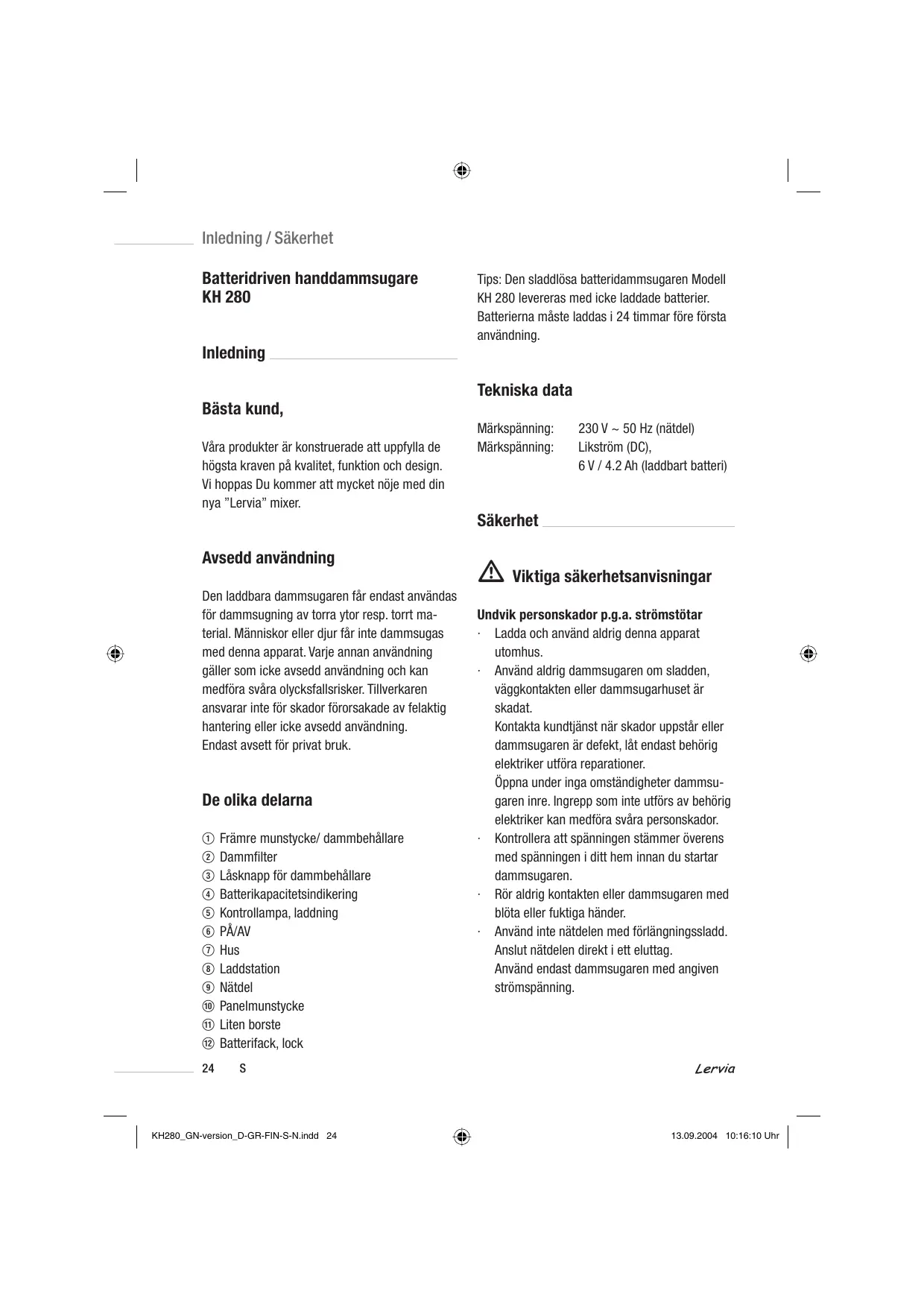 BRUKSANVISNING KH 280 LERVIA