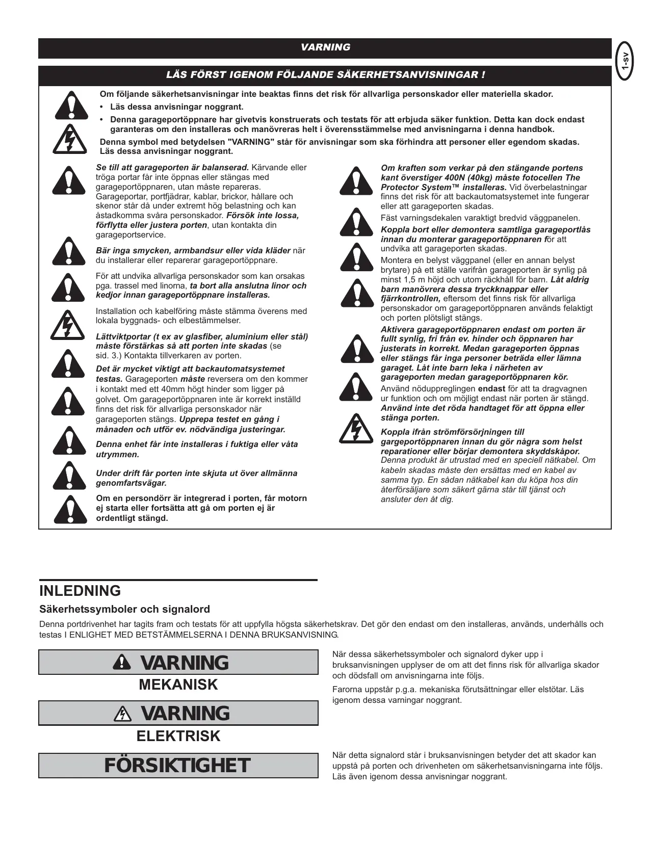ÉLECTRIQUE ATTENTION Si dans le cours de la notice vous rencontrez le mot-clé suivant, il vous indique le risque de dommages à la porte ou au système d’entraînement si les instructions y afférentes ne sont pas respectées. Lisez également ces instructions.