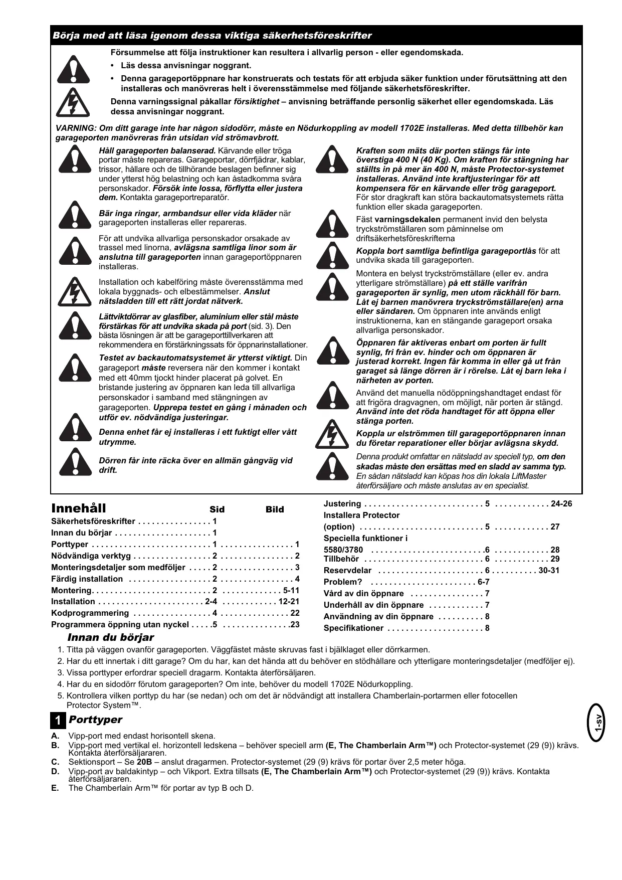 BRUKSANVISNING 3780 CHAMBERLAIN