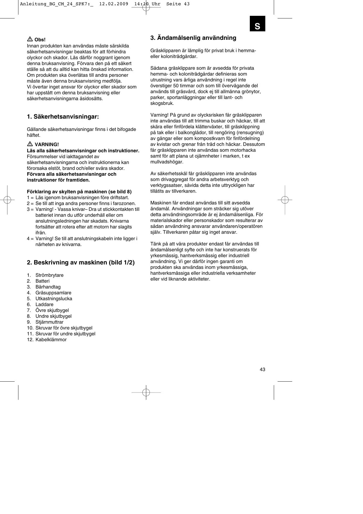 Téléchargez la notice de votre Gräsklippare au format PDF gratuitement ! Retrouvez votre notice BG-CM 24 - EINHELL et reprennez votre appareil électronique en main. Sur cette page sont publiés tous les documents nécessaires à l'utilisation de votre appareil BG-CM 24 de la marque EINHELL.