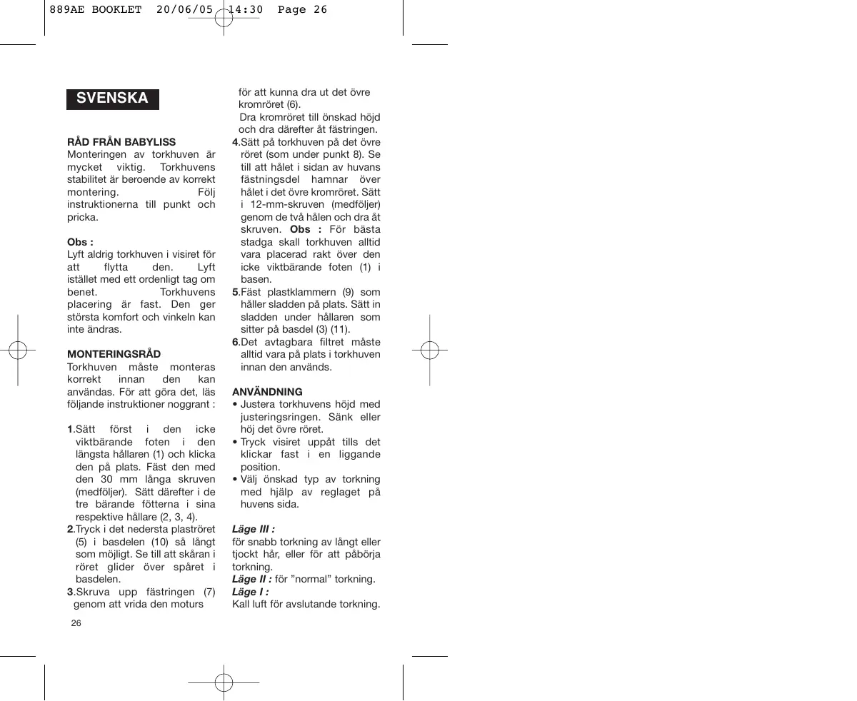 BRUKSANVISNING 889AE, 889AE BABYLISS