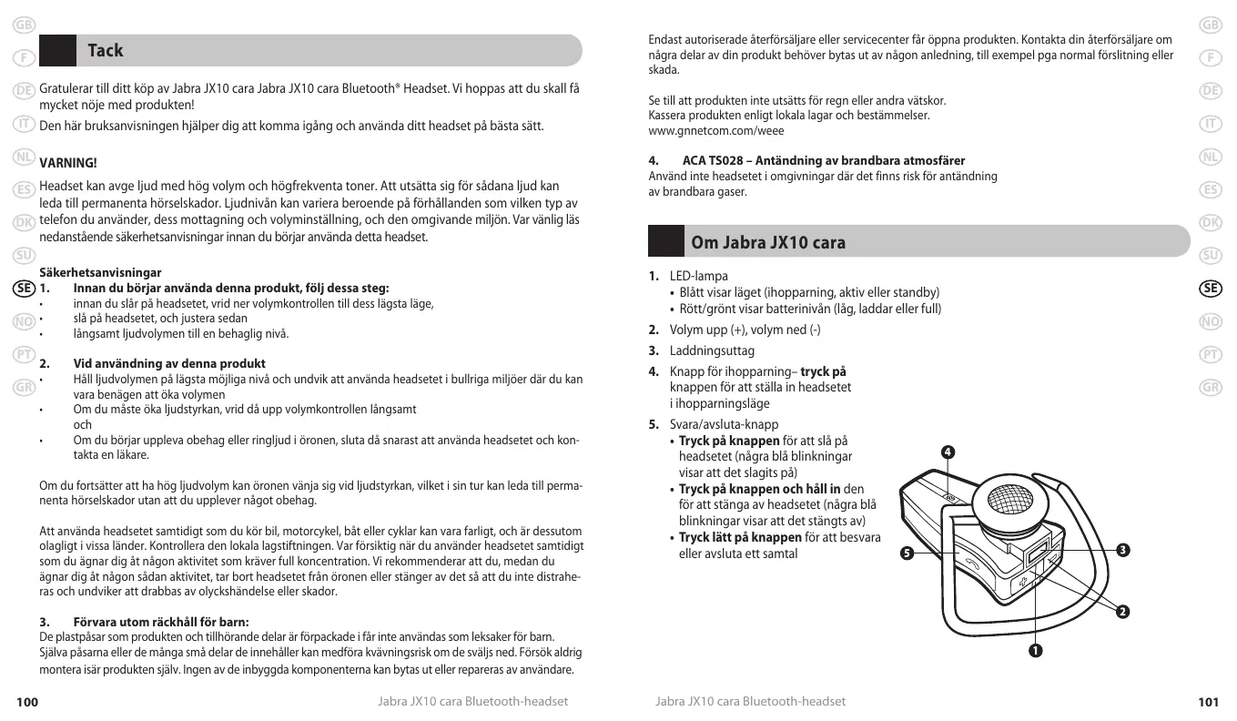 Téléchargez la notice de votre Bluetooth Headset au format PDF gratuitement ! Retrouvez votre notice JX10 CARA - JABRA et reprennez votre appareil électronique en main. Sur cette page sont publiés tous les documents nécessaires à l'utilisation de votre appareil JX10 CARA de la marque JABRA.