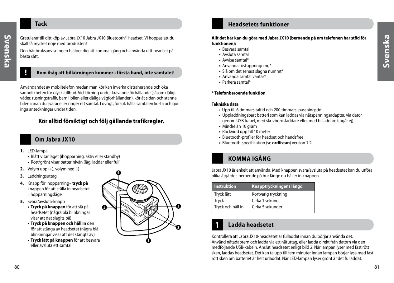 BRUKSANVISNING JX-10 SERIE II JABRA