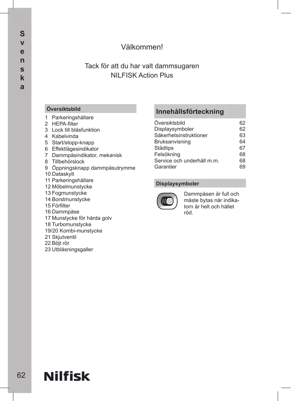 Retrouvez gratuitement la notice de l'appareil ACTION PLUS NILFISK au format PDF.